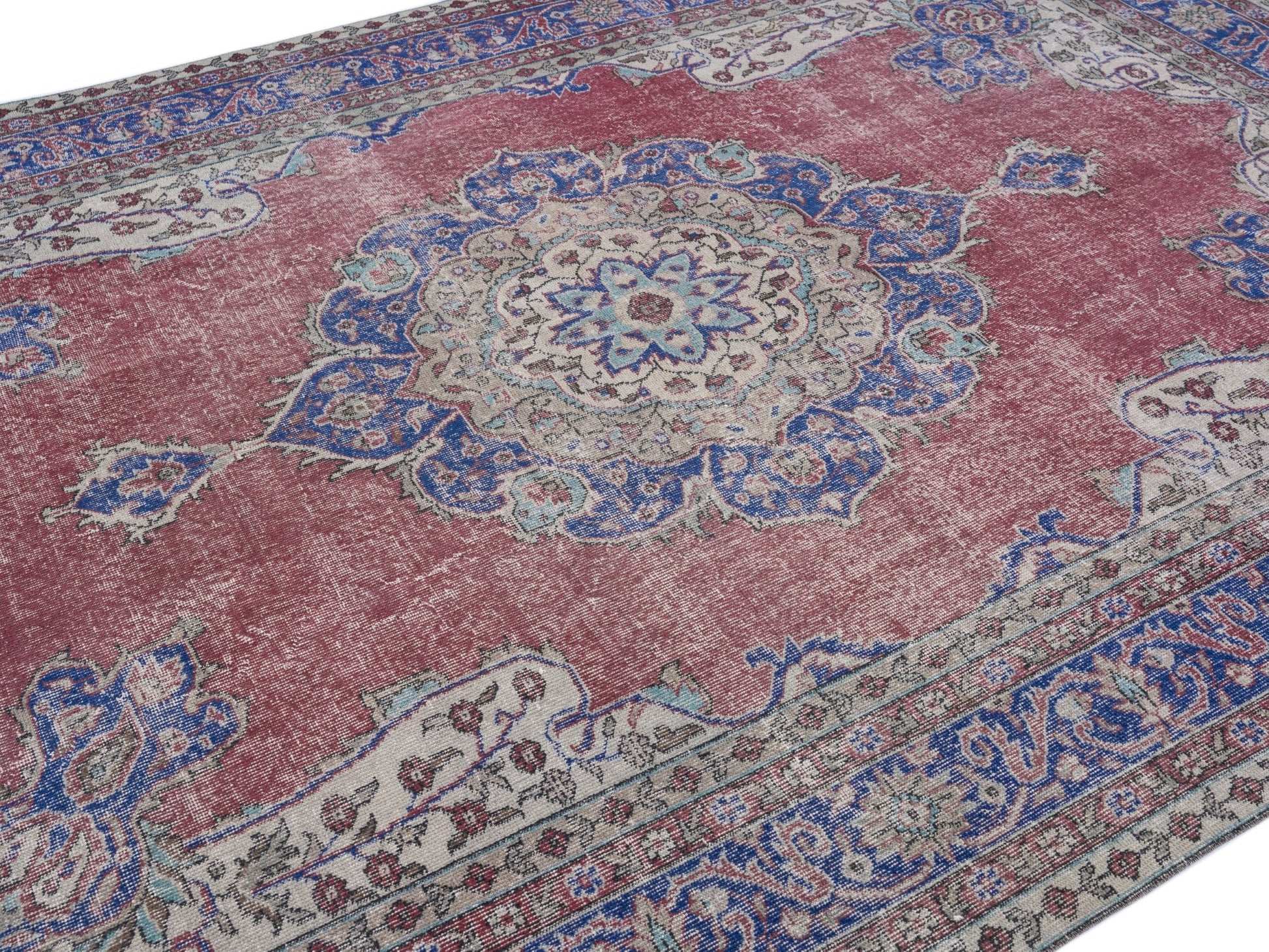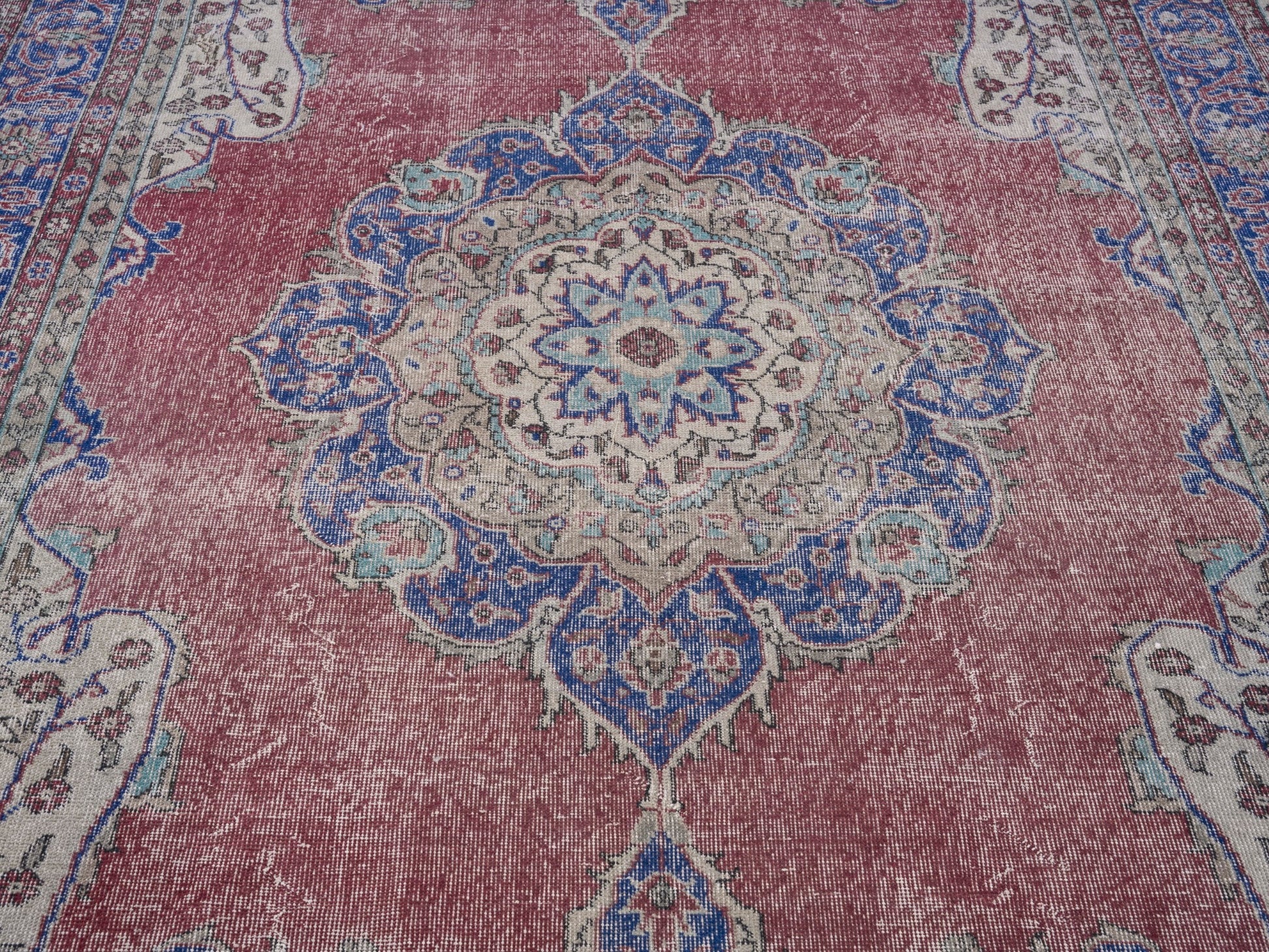 All the rugs we sell are professionally washed and cleaned; age-related wear and natural inconsistencies are inherent in these unique, handcrafted vintage rugs.
