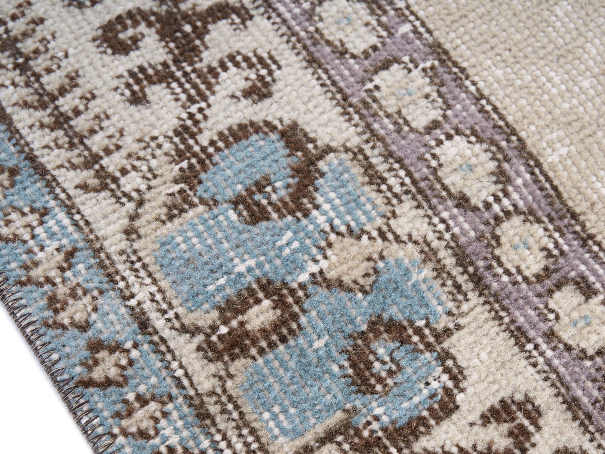 This rug is a hand-knotted rug, and edges are hand sewn.