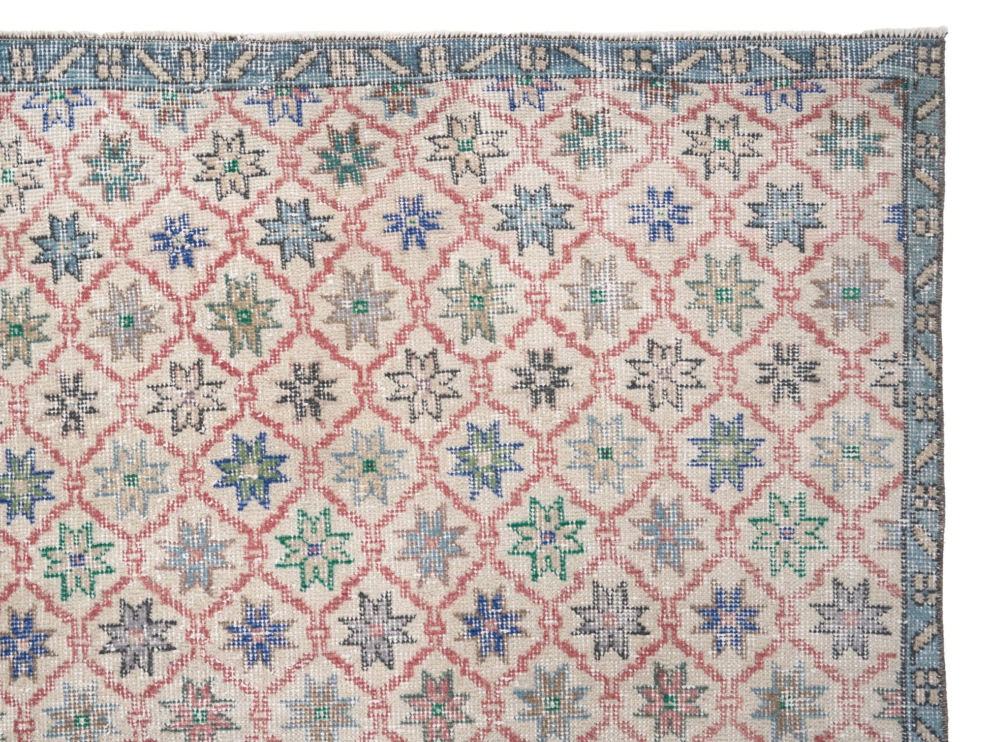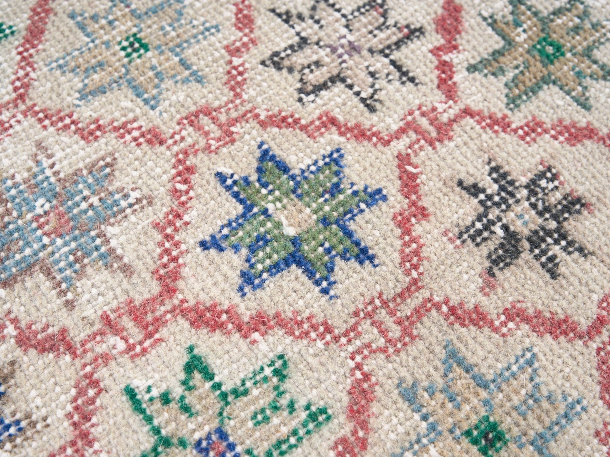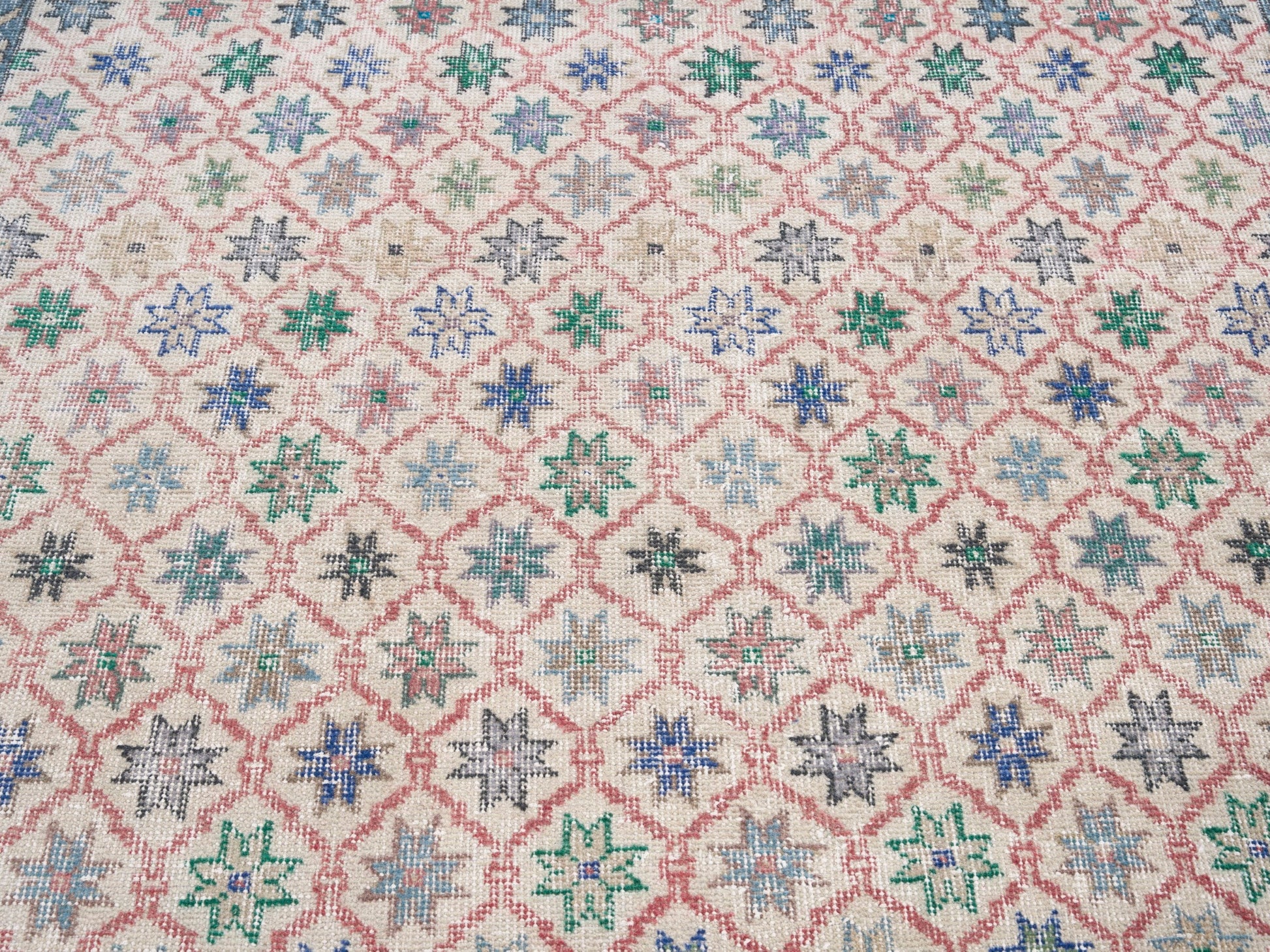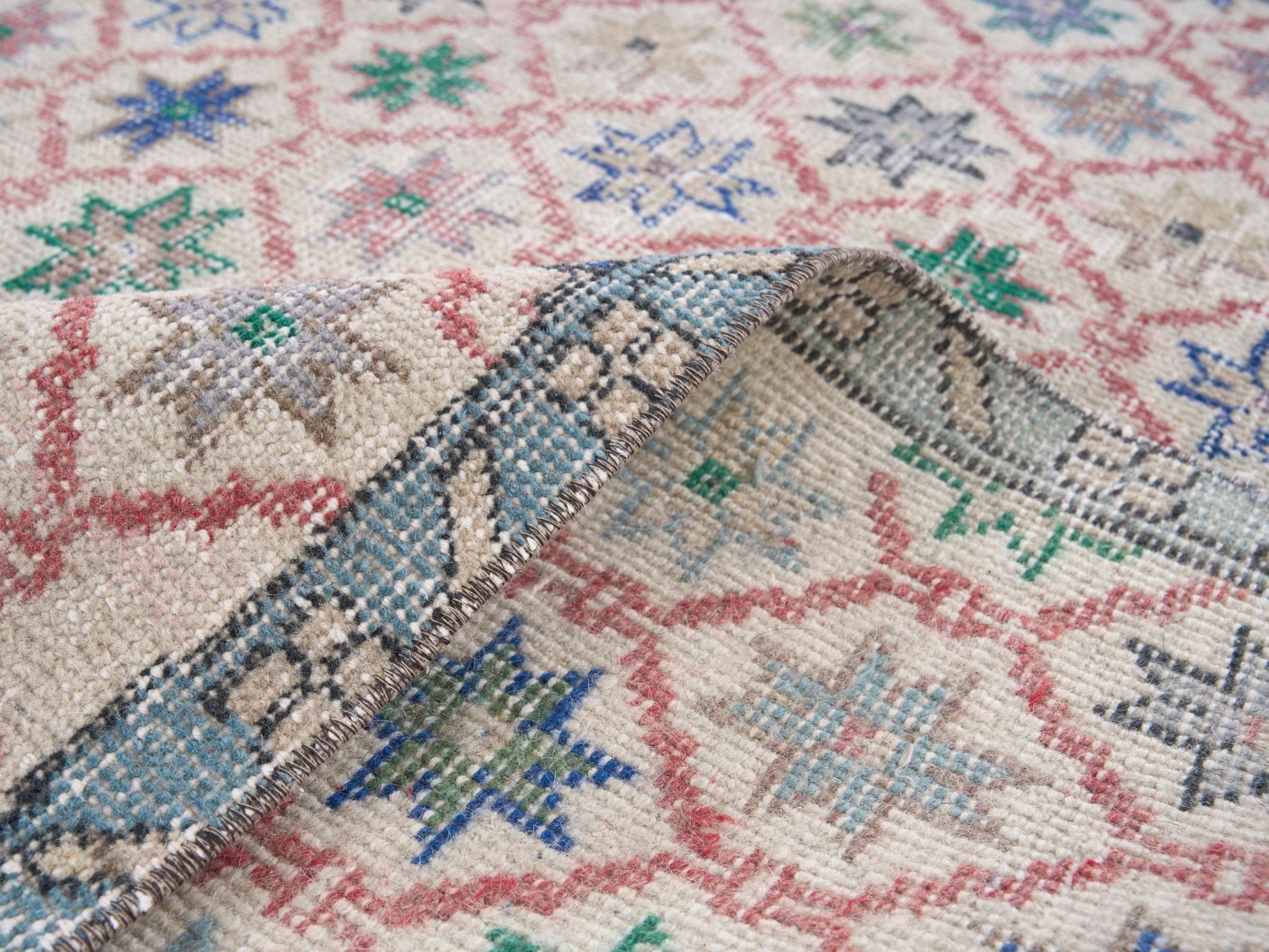 All the rugs we sell are professionally washed and cleaned; age-related wear and natural inconsistencies are inherent in these unique, handcrafted vintage rugs.