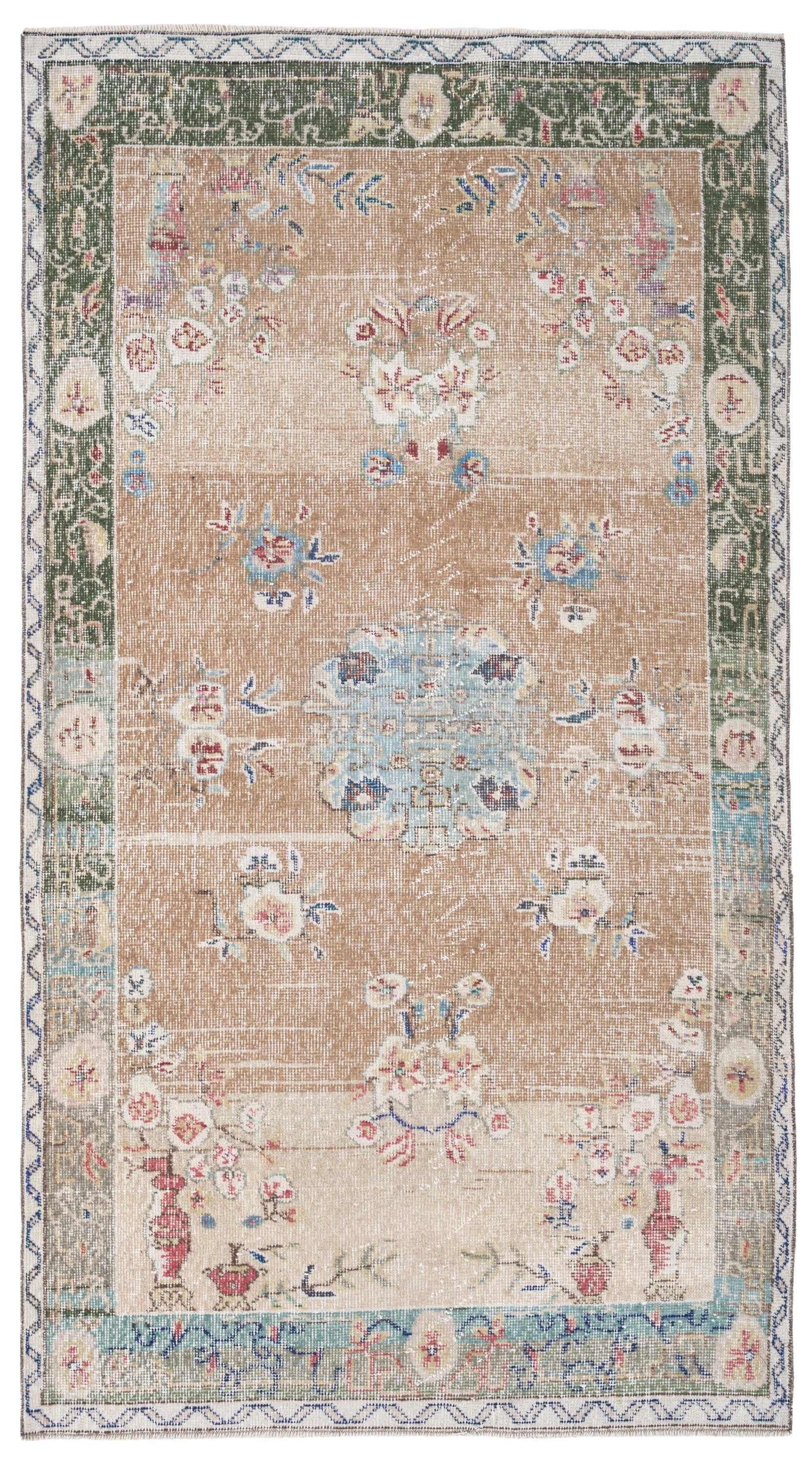 All the rugs we sell are professionally washed and cleaned; age-related wear and natural inconsistencies are inherent in these unique, handcrafted vintage rugs.