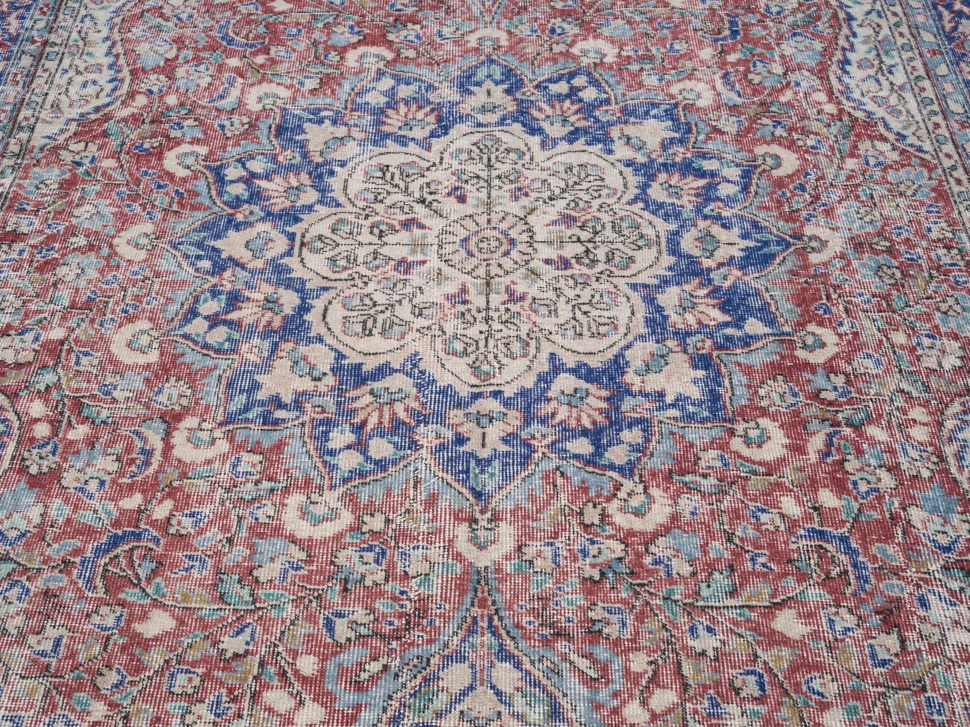 All the rugs we sell are professionally washed and cleaned; age-related wear and natural inconsistencies are inherent in these unique, handcrafted vintage rugs.