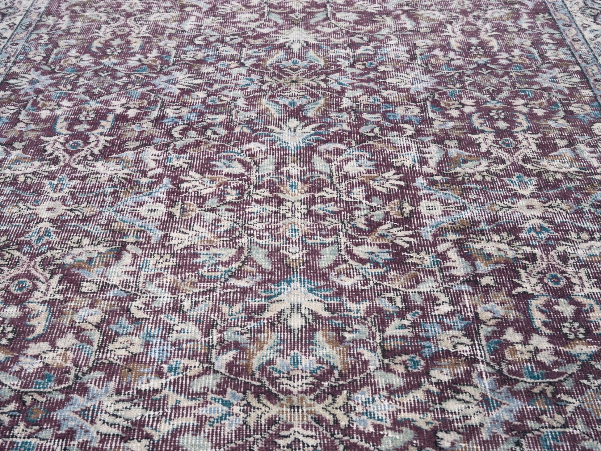 All the rugs we sell are professionally washed and cleaned; age-related wear and natural inconsistencies are inherent in these unique, handcrafted vintage rugs.