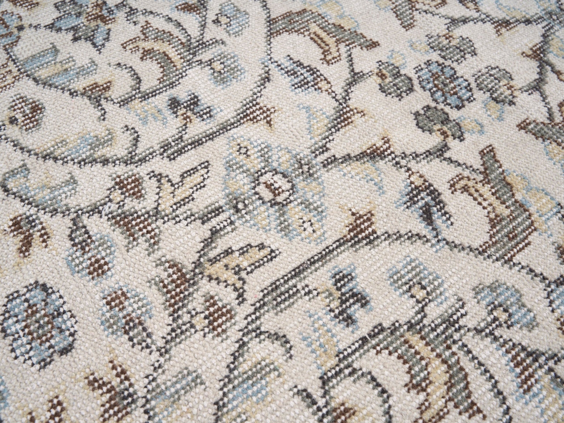 This rug is a hand-knotted rug, and edges are hand sewn.