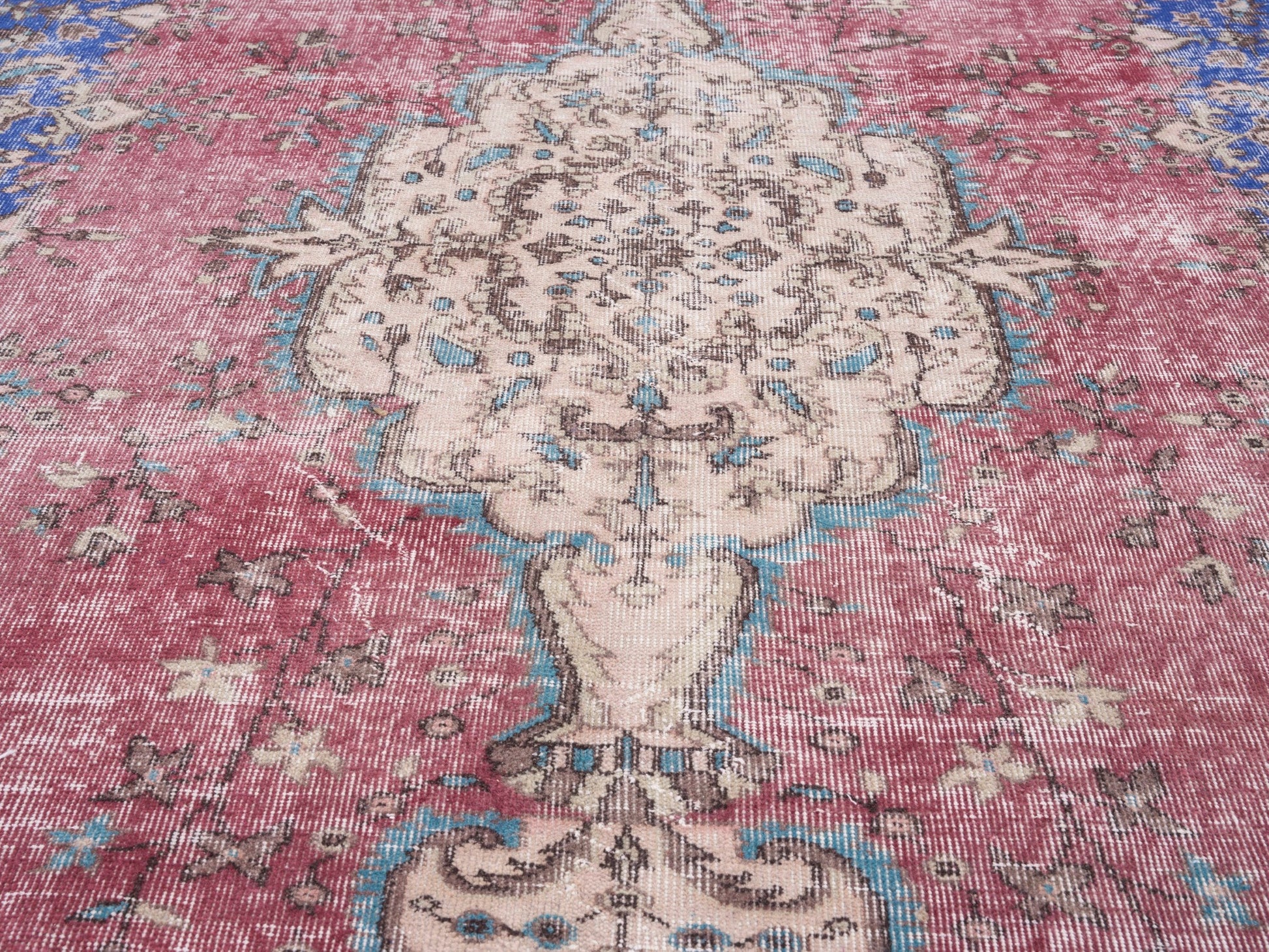 All the rugs we sell are professionally washed and cleaned; age-related wear and natural inconsistencies are inherent in these unique, handcrafted vintage rugs.
