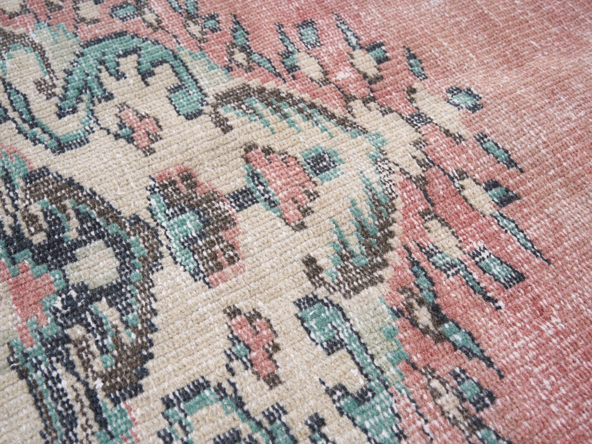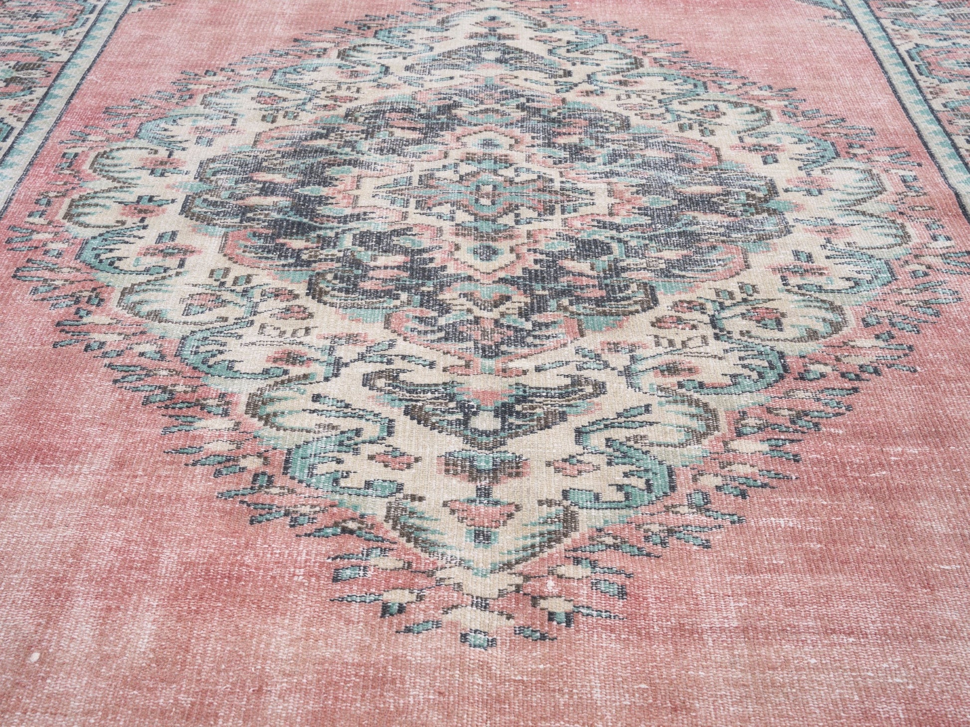 All the rugs we sell are professionally washed and cleaned; age-related wear and natural inconsistencies are inherent in these unique, handcrafted vintage rugs.