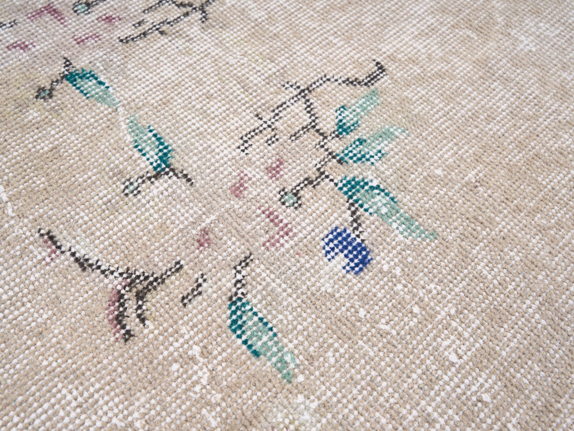 All the rugs we sell are professionally washed and cleaned; age-related wear and natural inconsistencies are inherent in these unique, handcrafted vintage rugs.
