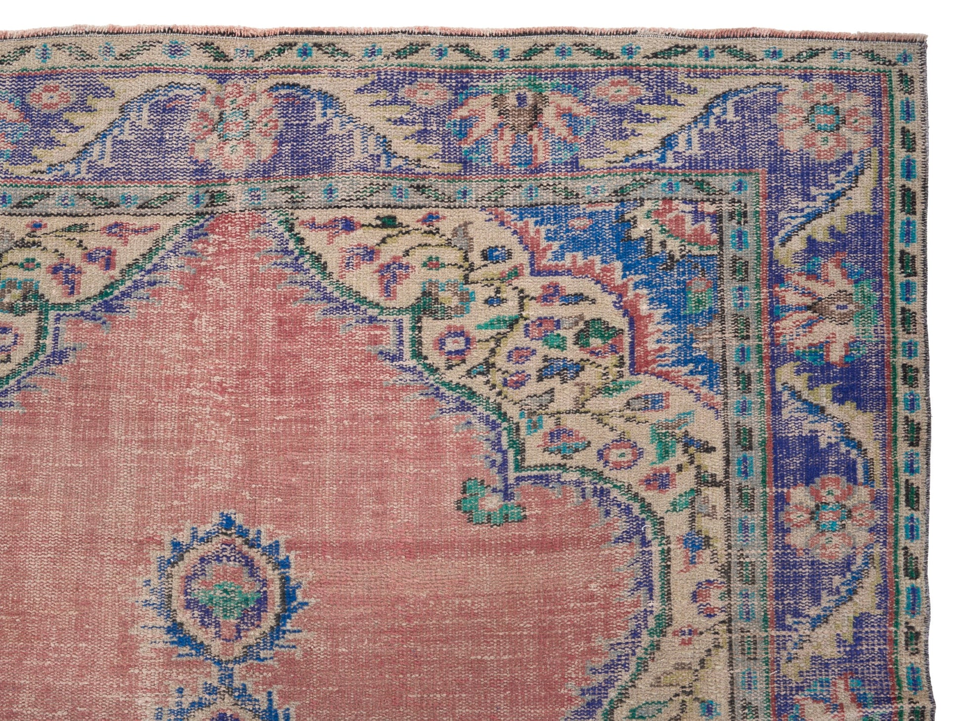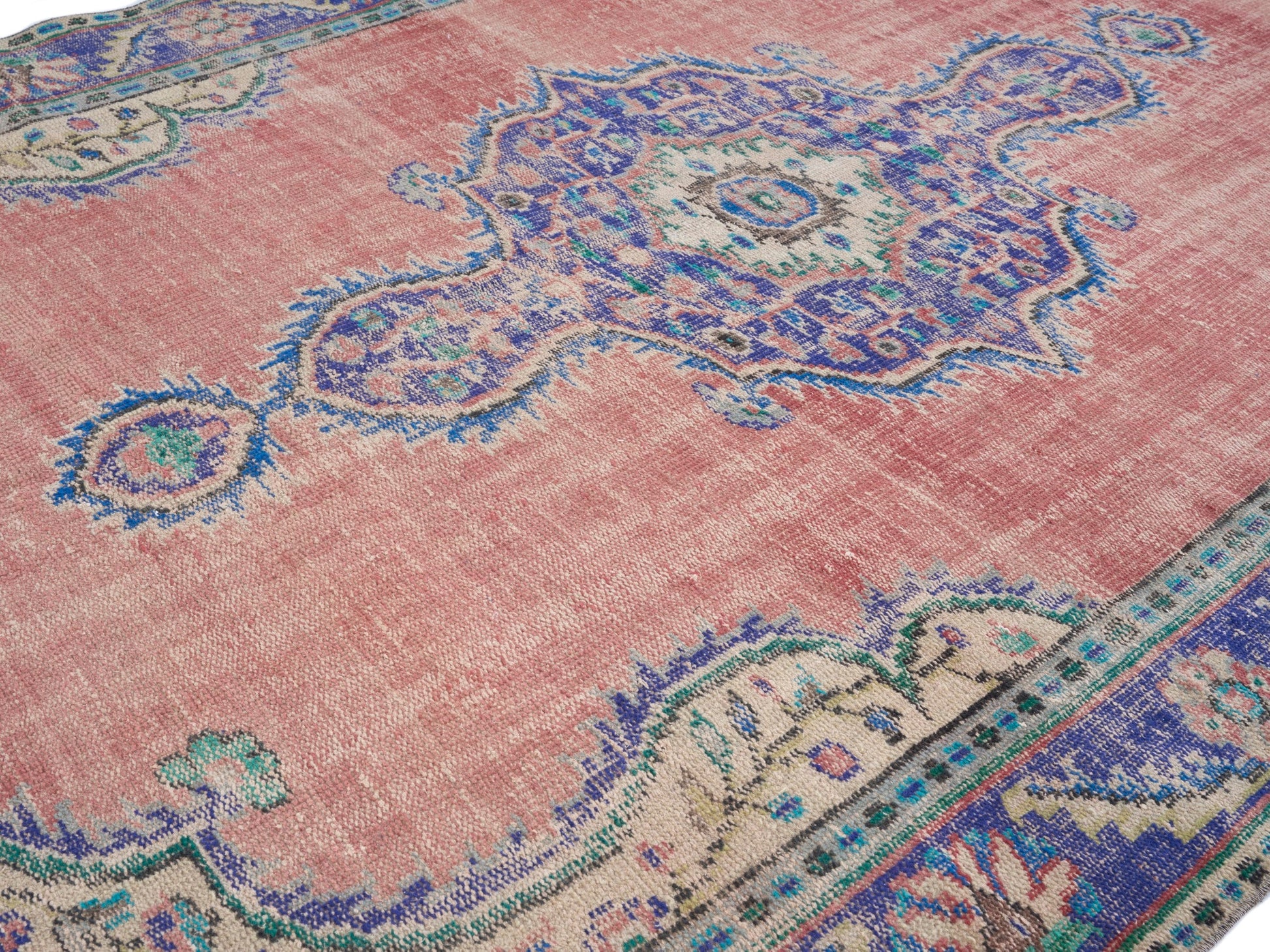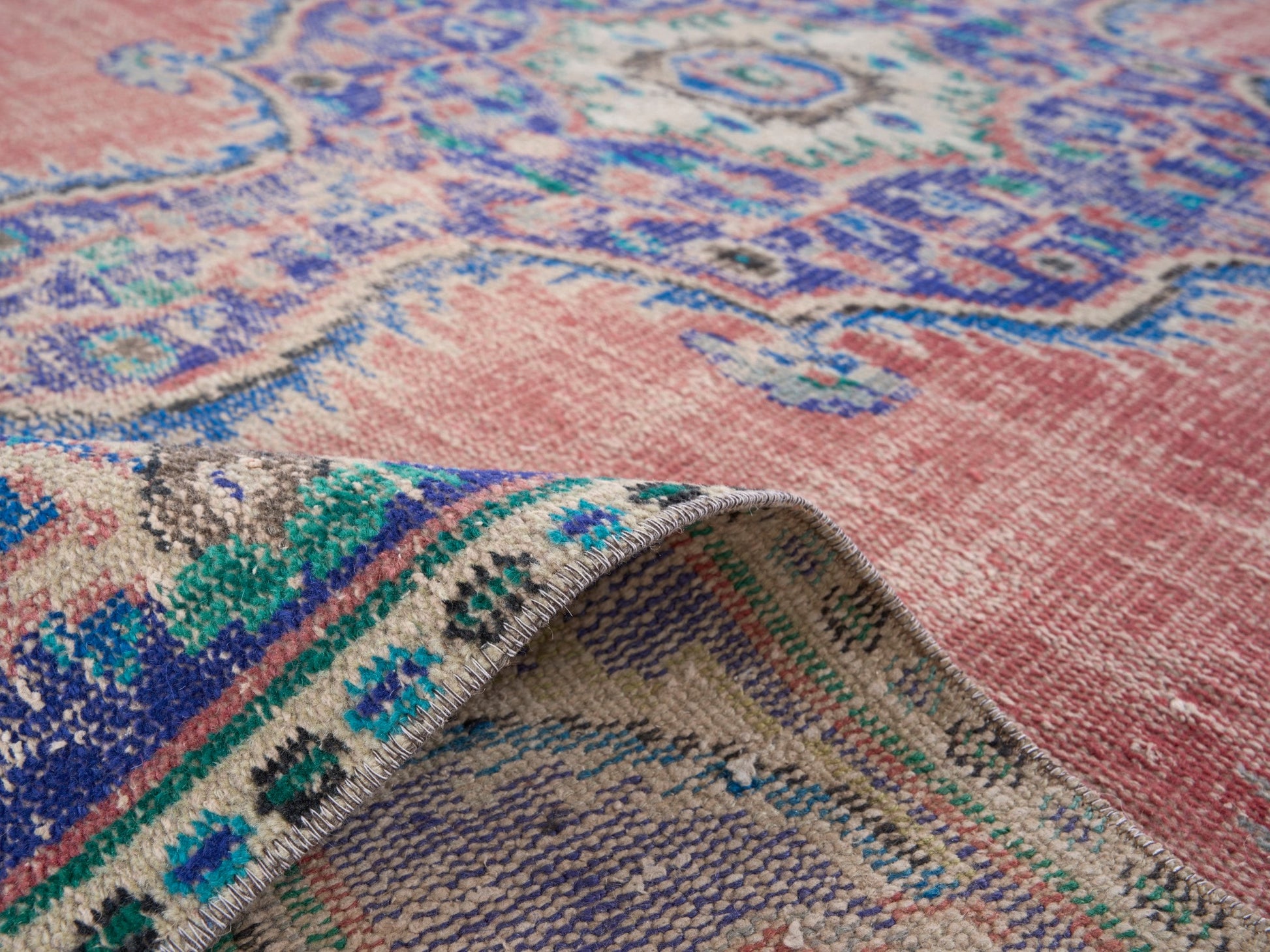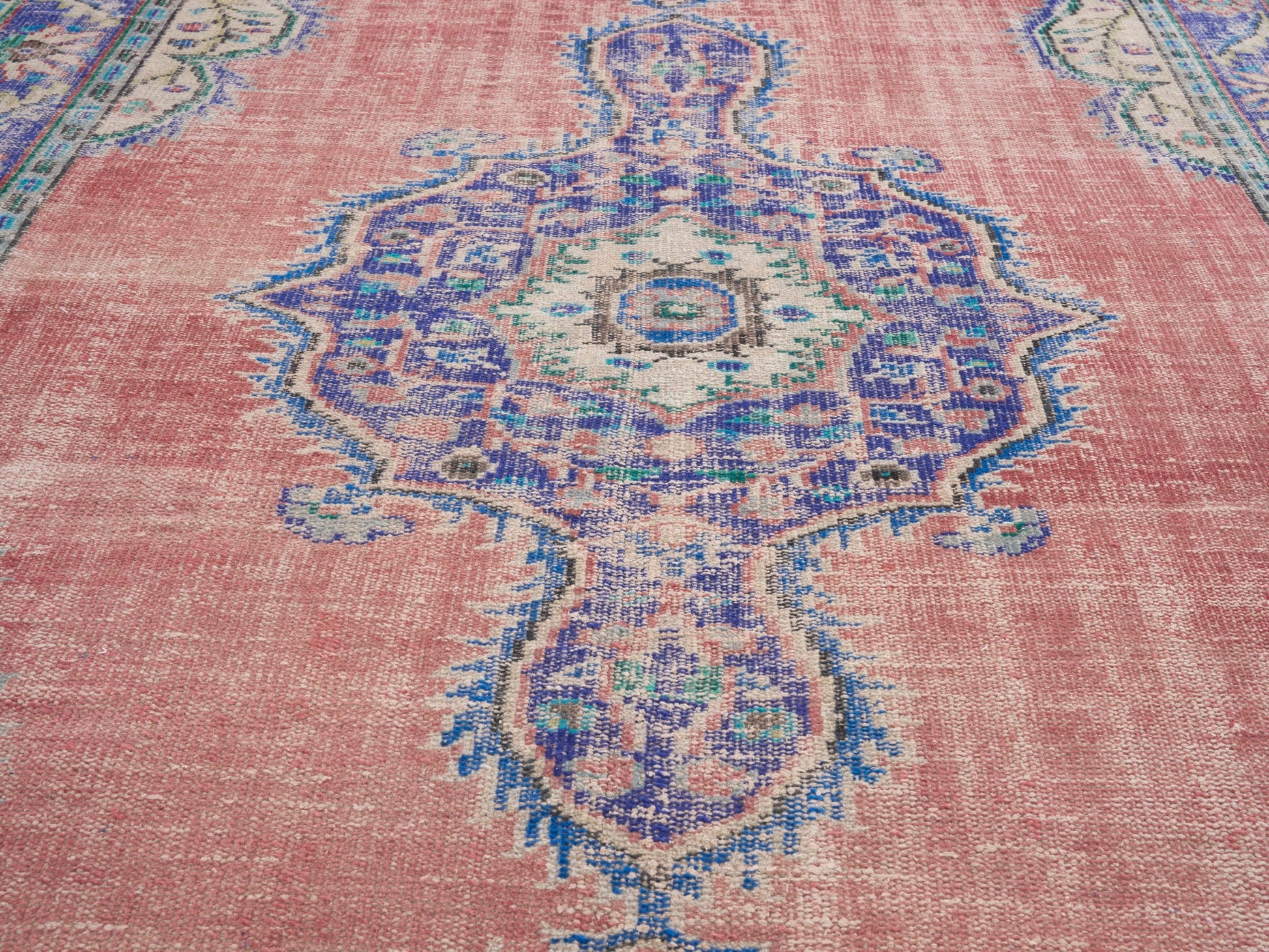 All the rugs we sell are professionally washed and cleaned; age-related wear and natural inconsistencies are inherent in these unique, handcrafted vintage rugs.