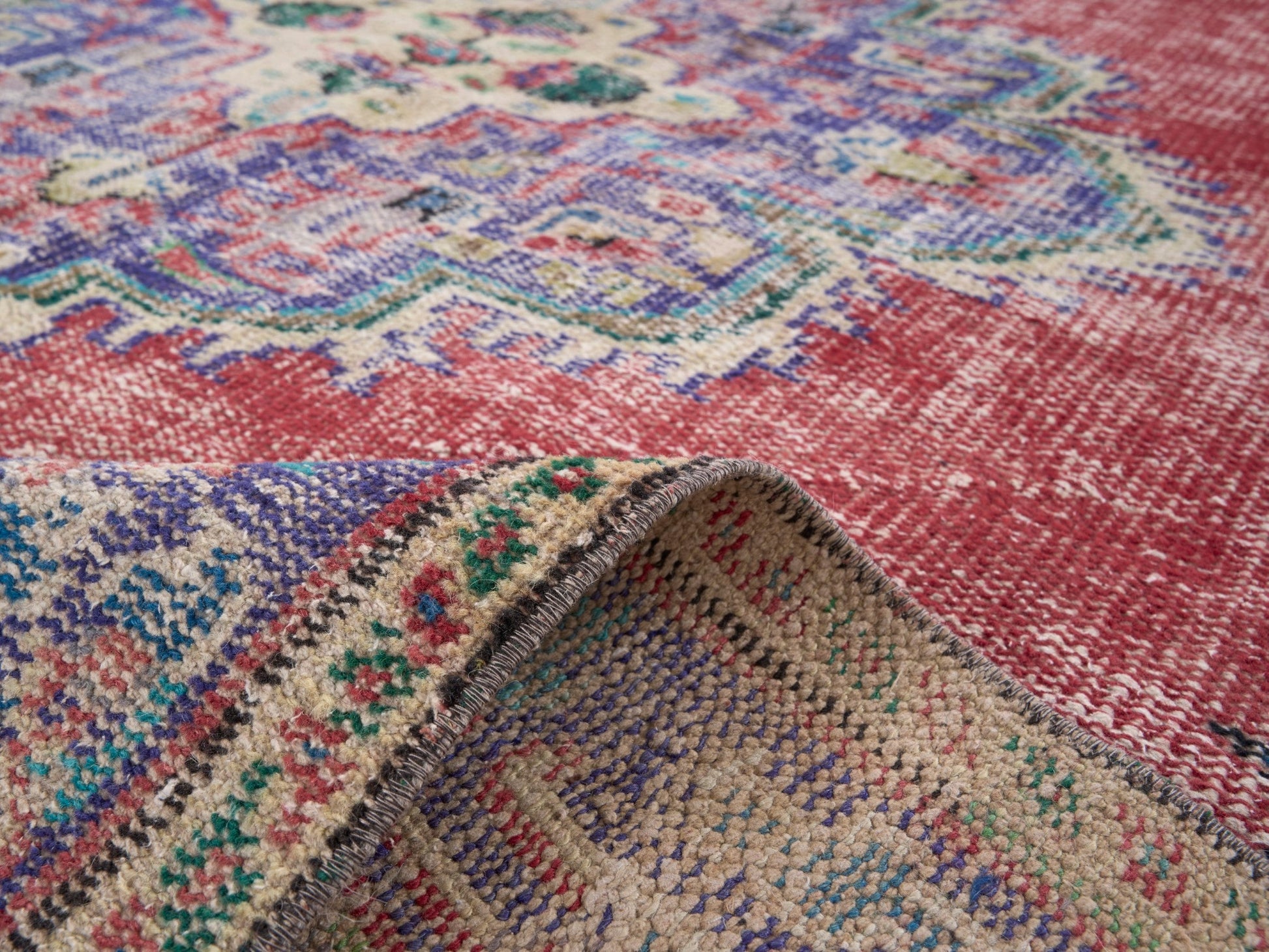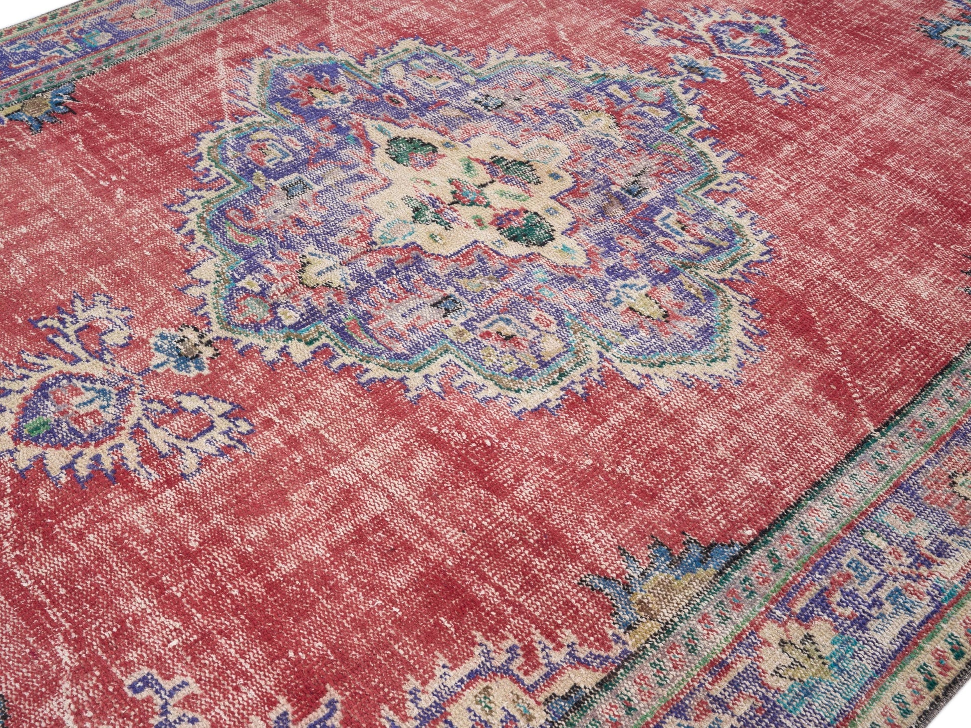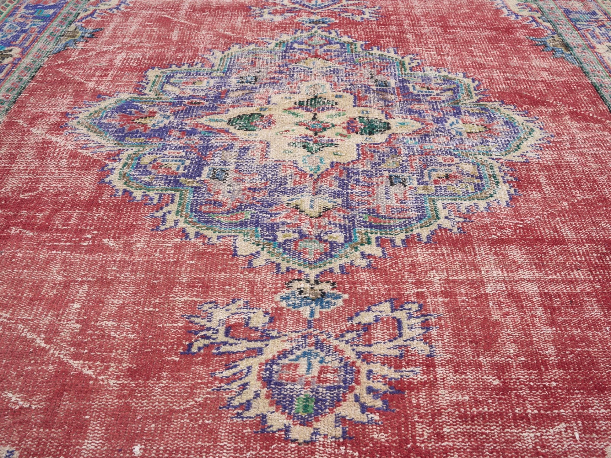 All the rugs we sell are professionally washed and cleaned; age-related wear and natural inconsistencies are inherent in these unique, handcrafted vintage rugs.
