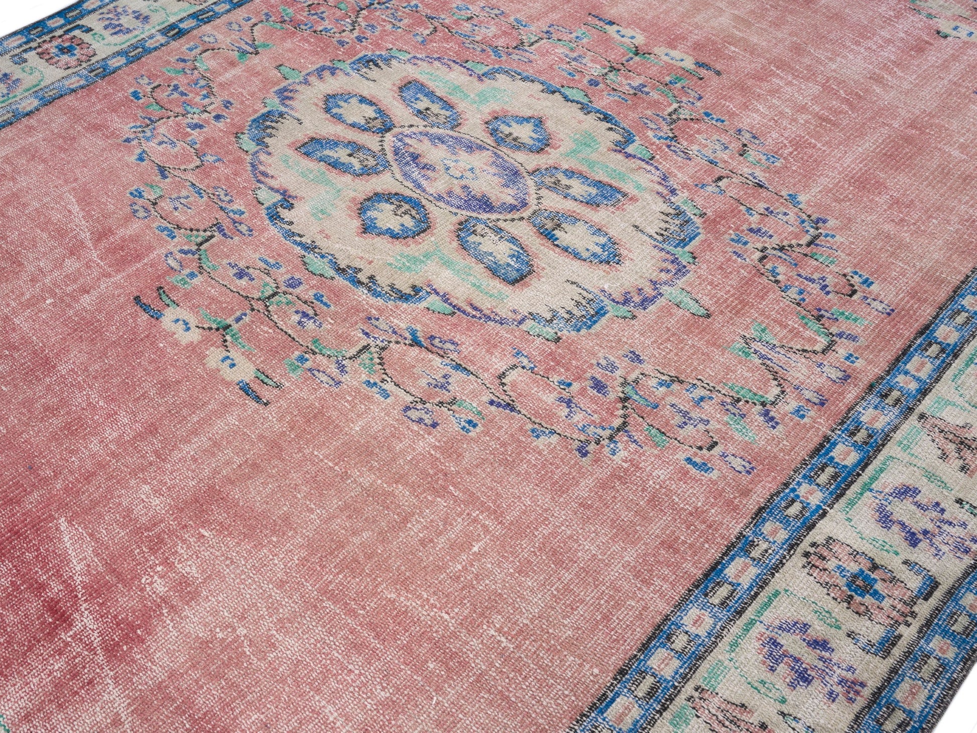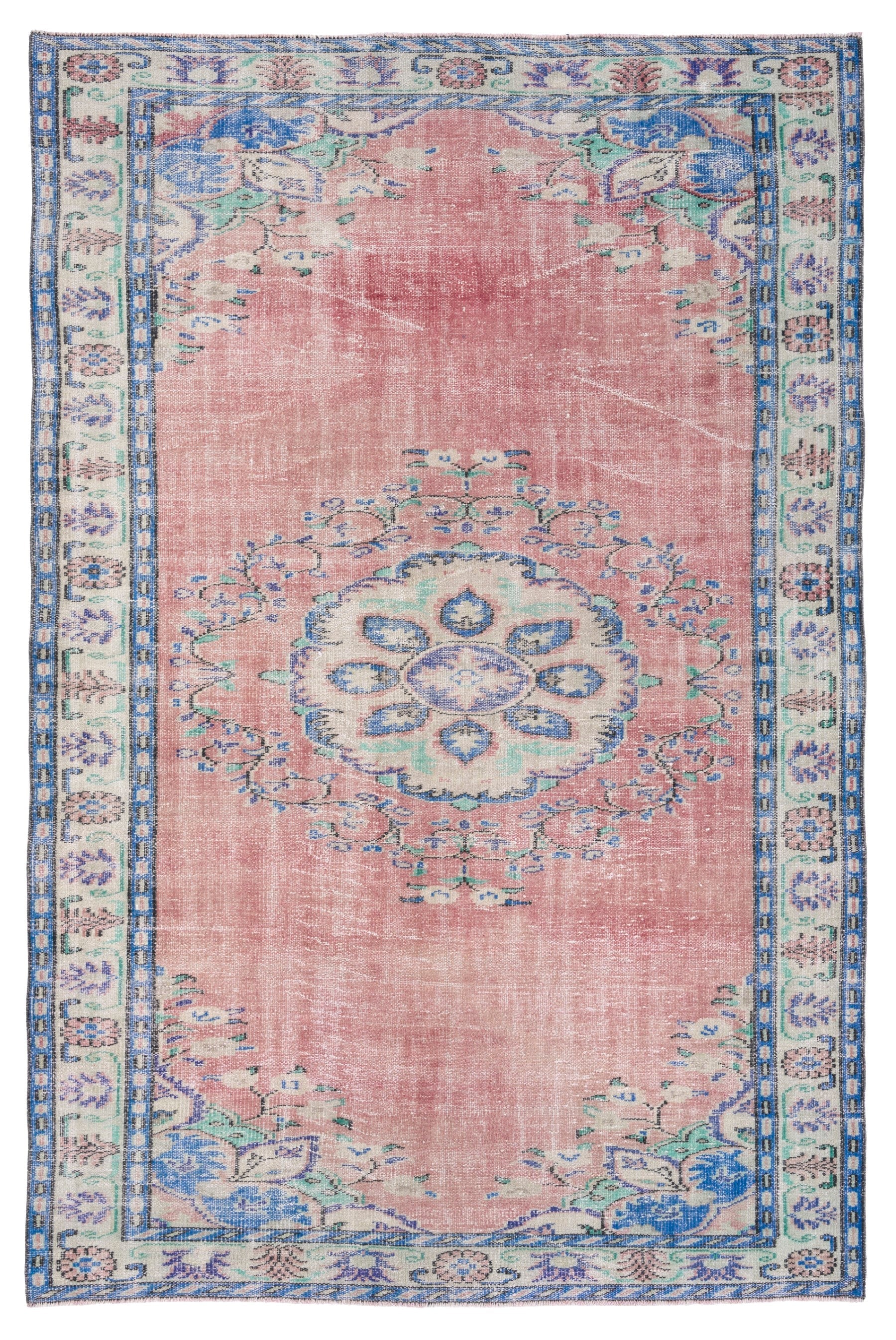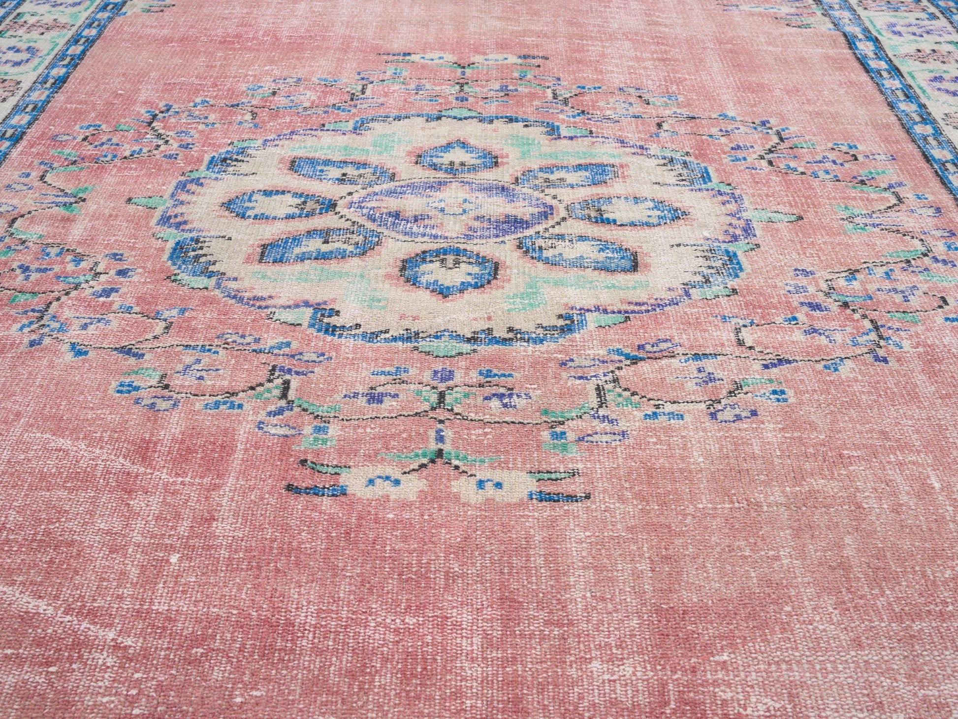 All the rugs we sell are professionally washed and cleaned; age-related wear and natural inconsistencies are inherent in these unique, handcrafted vintage rugs.