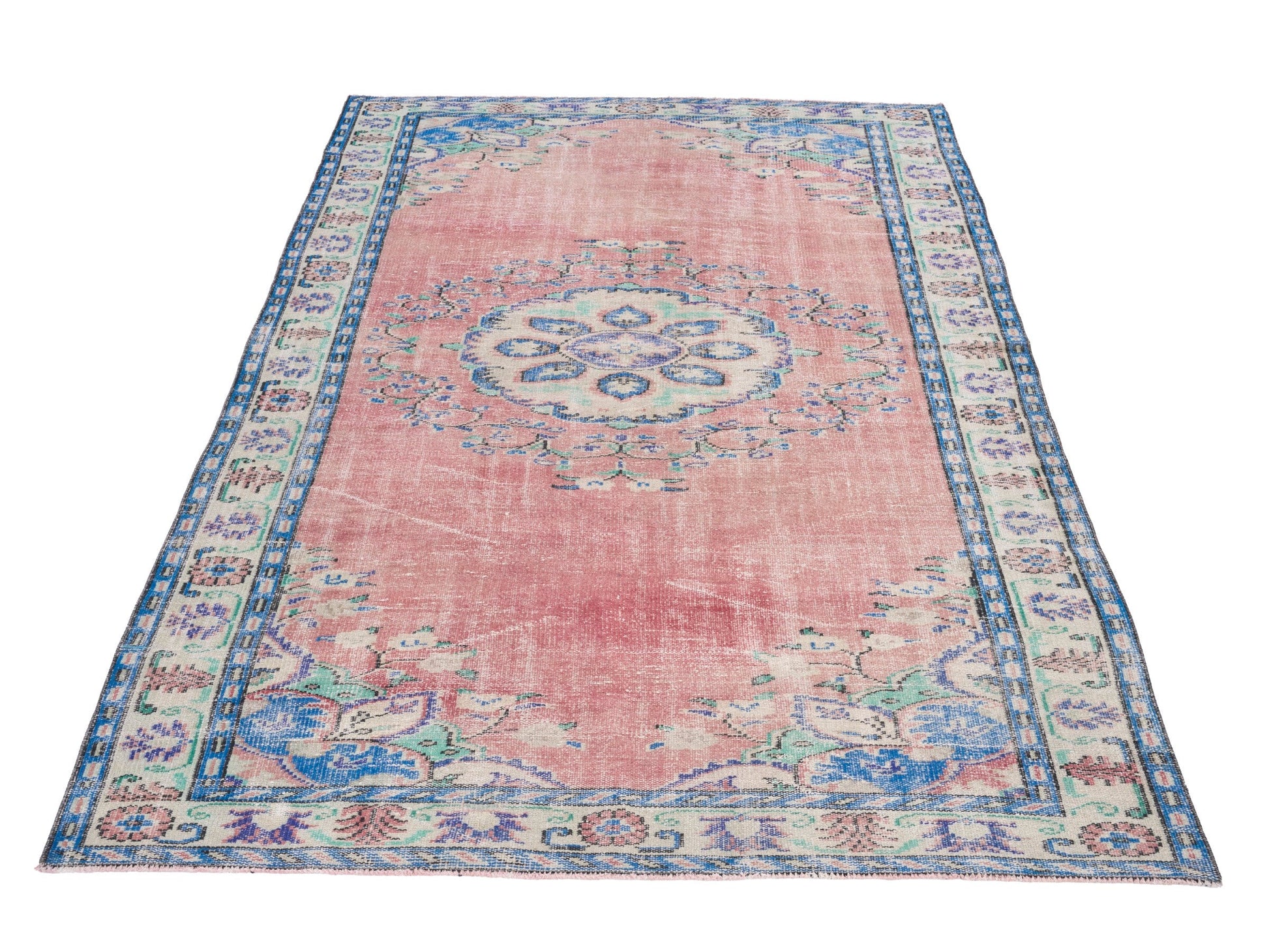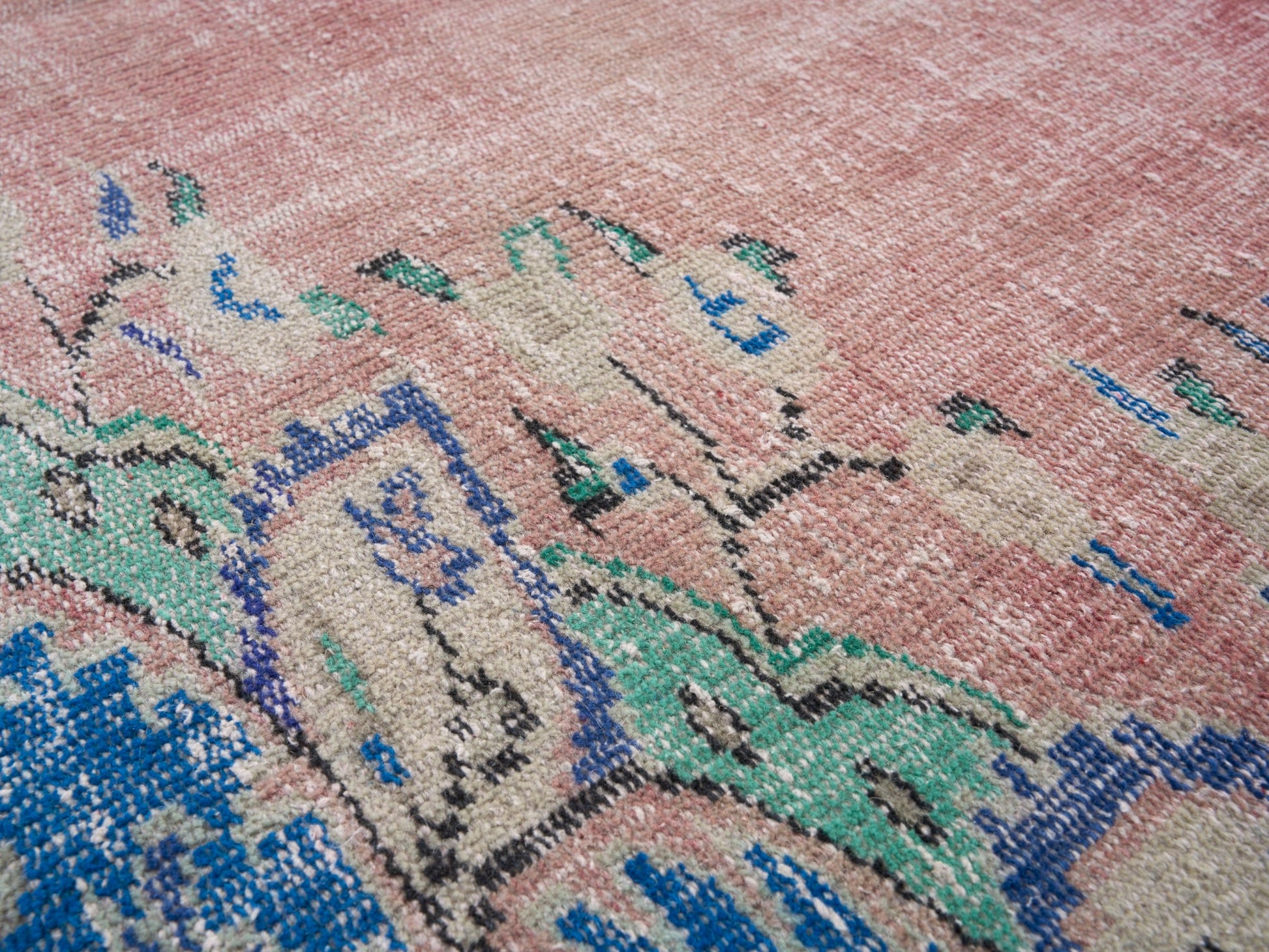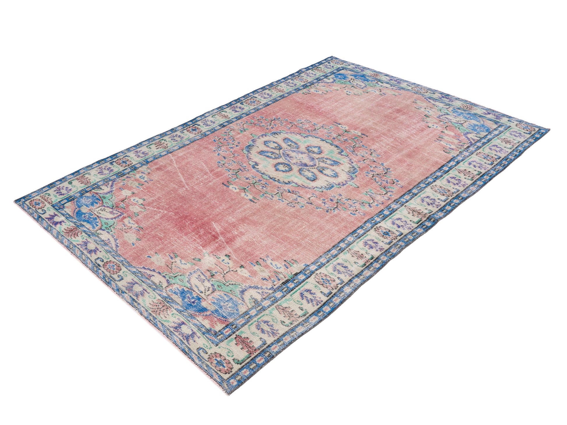 All the rugs we sell are professionally washed and cleaned; age-related wear and natural inconsistencies are inherent in these unique, handcrafted vintage rugs.