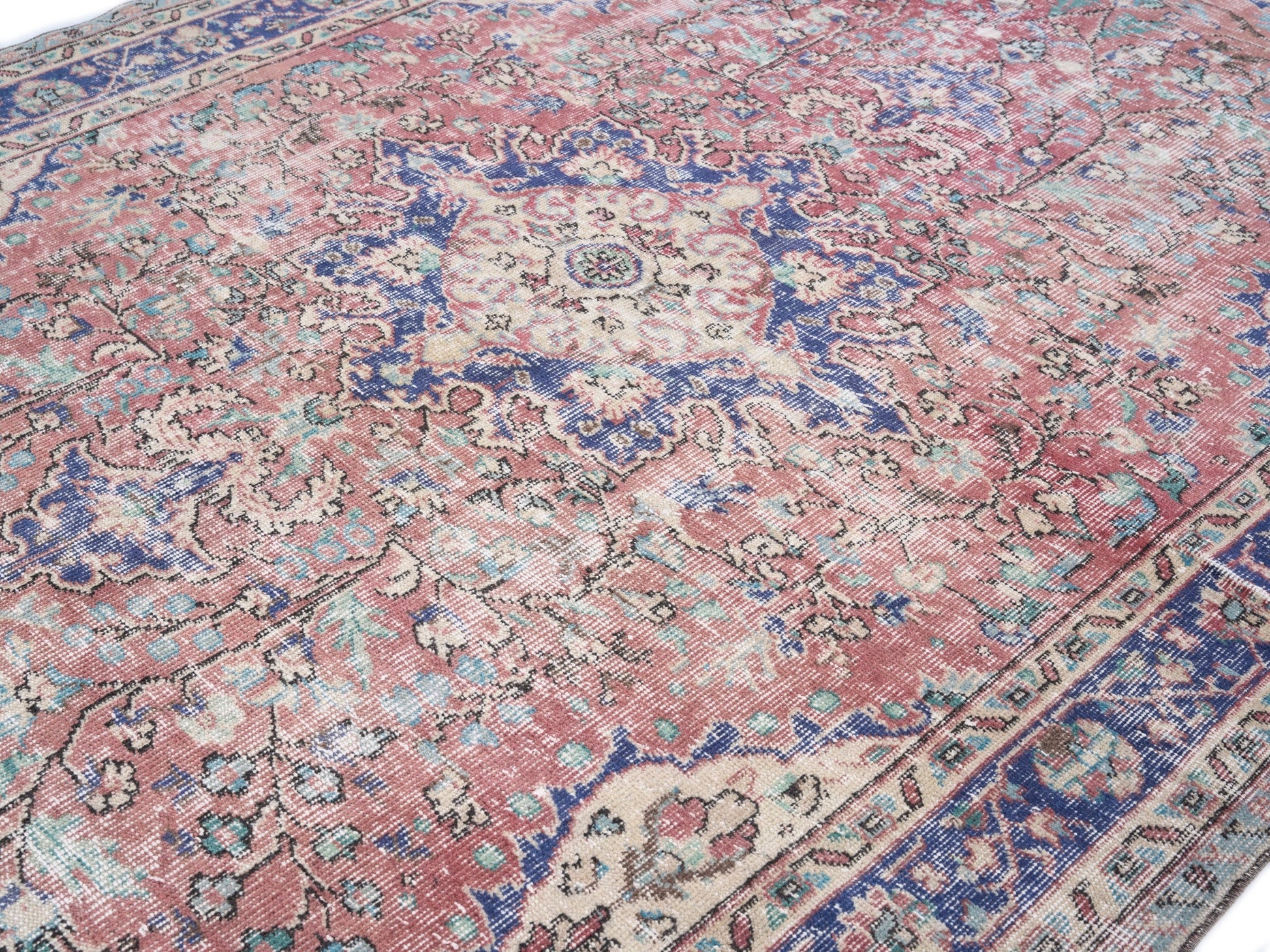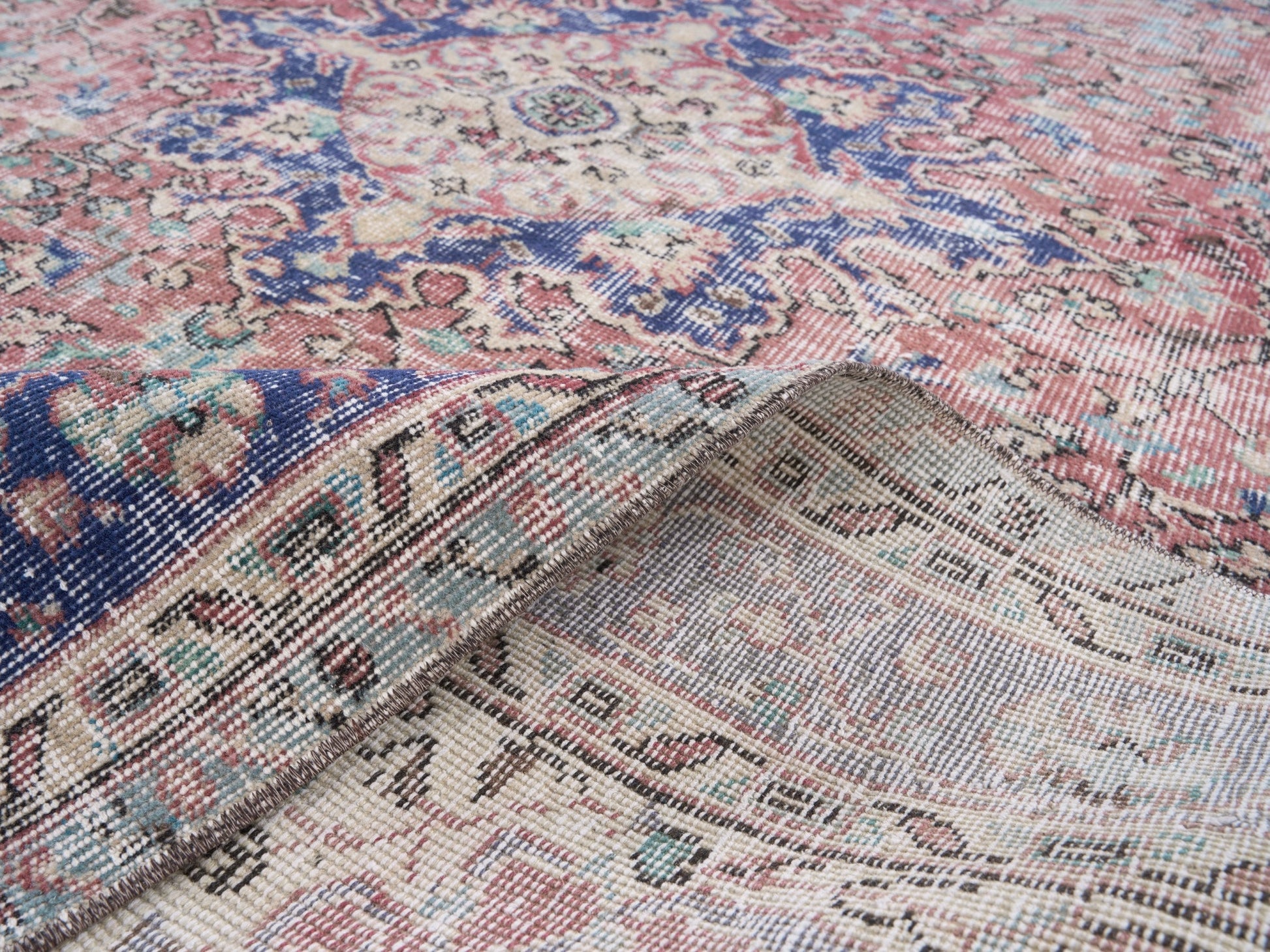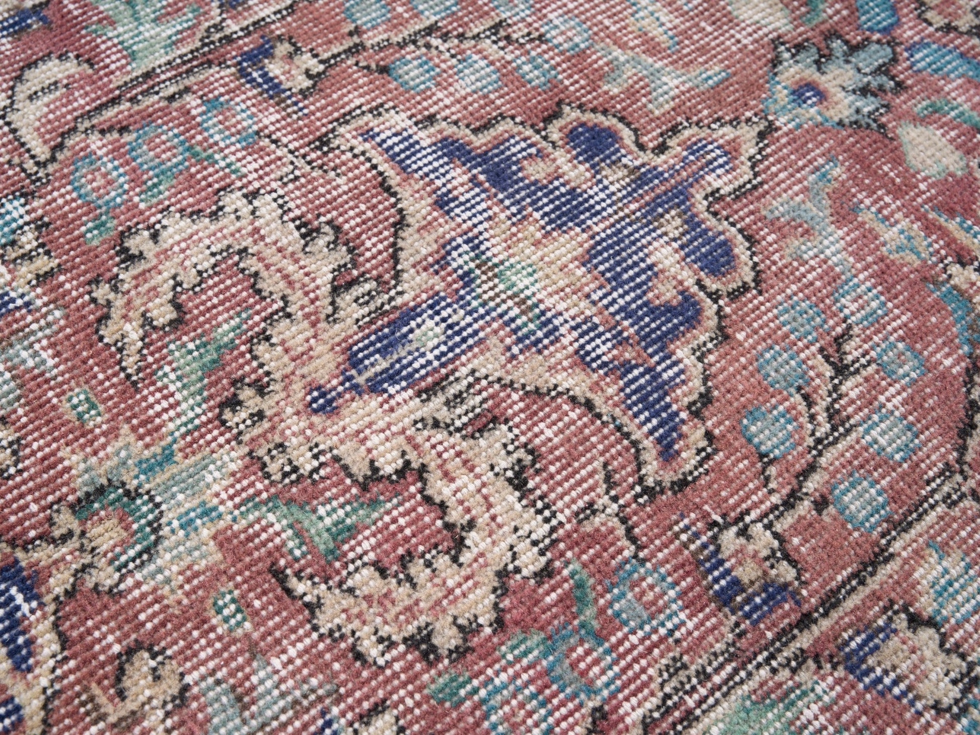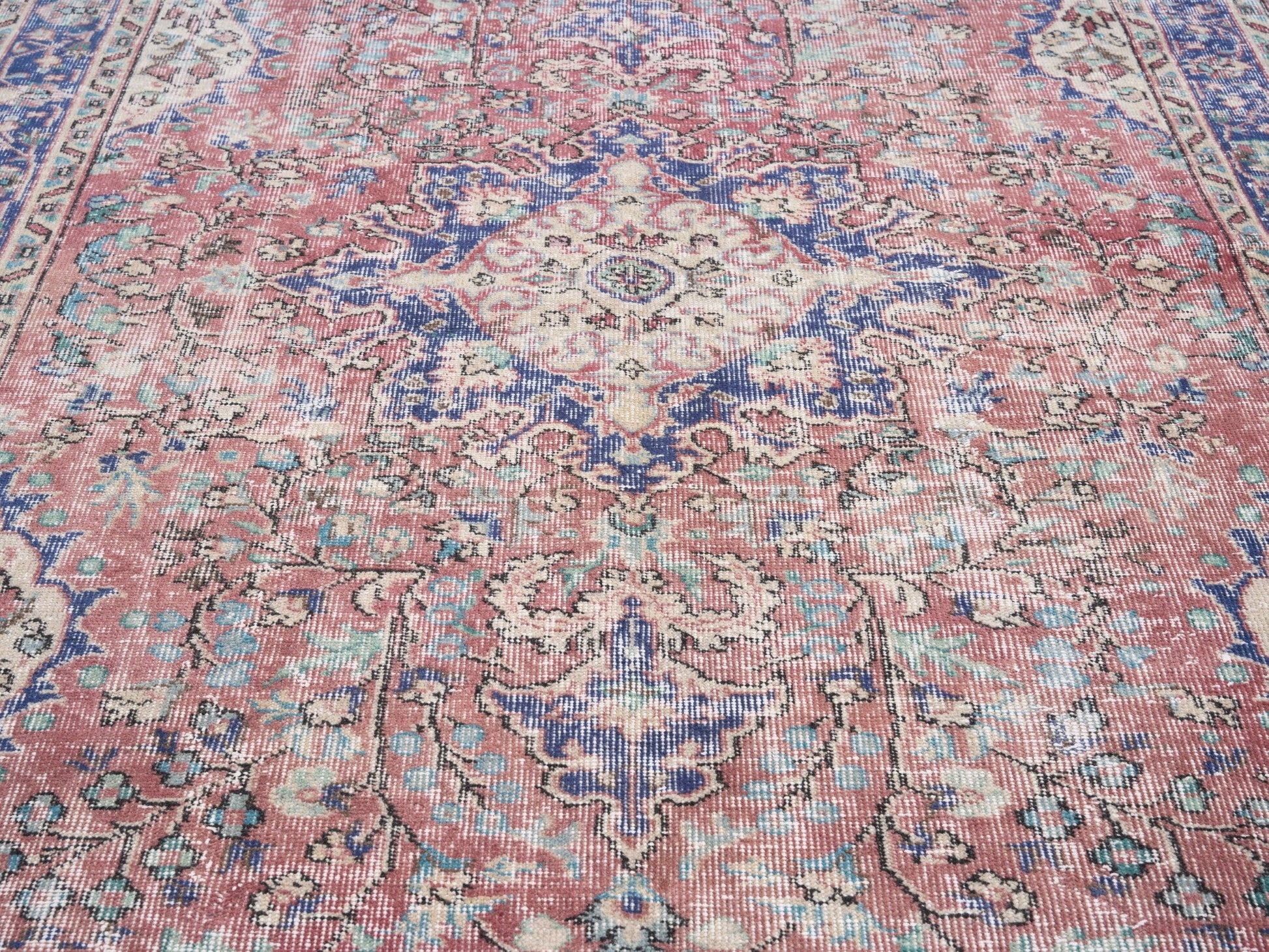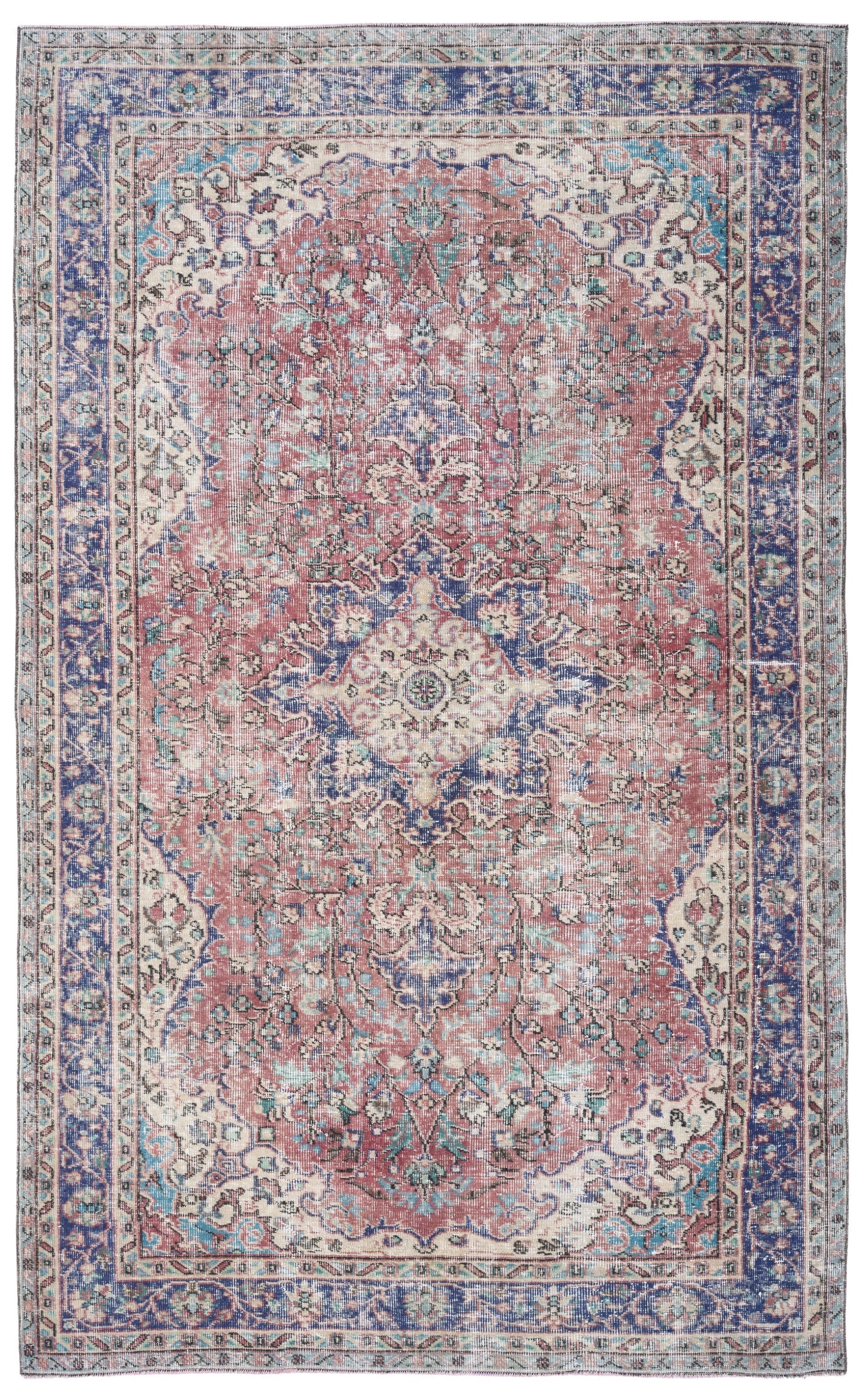 All the rugs we sell are professionally washed and cleaned; age-related wear and natural inconsistencies are inherent in these unique, handcrafted vintage rugs.