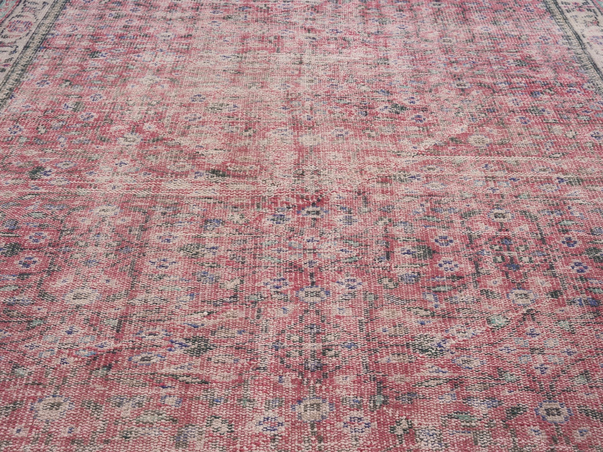 All the rugs we sell are professionally washed and cleaned; age-related wear and natural inconsistencies are inherent in these unique, handcrafted vintage rugs.
