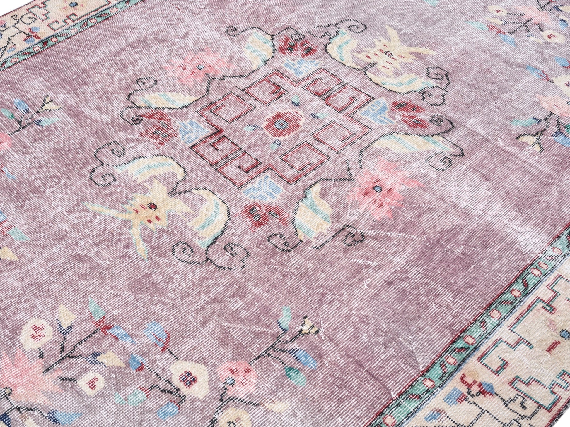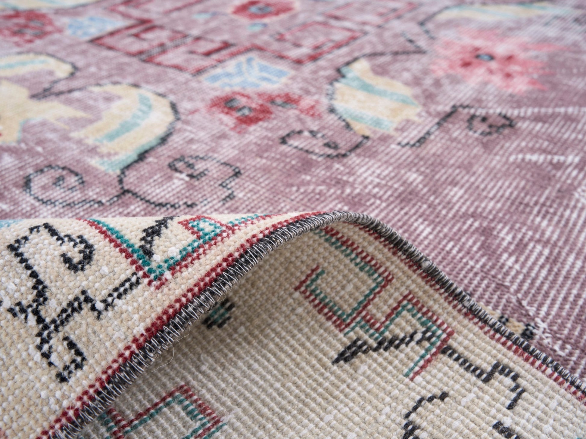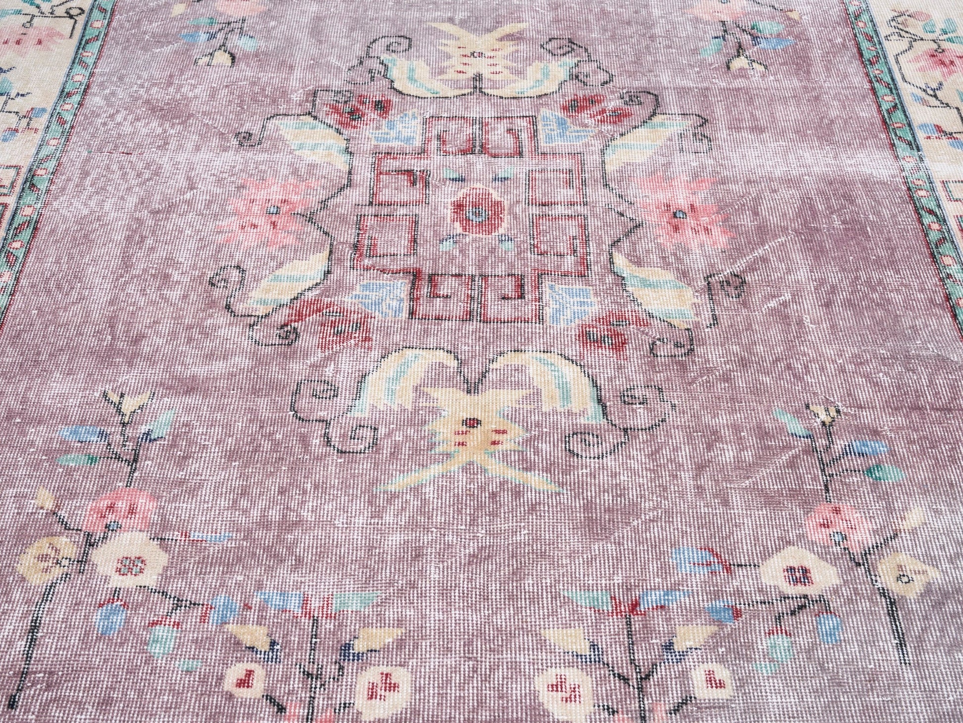 All the rugs we sell are professionally washed and cleaned; age-related wear and natural inconsistencies are inherent in these unique, handcrafted vintage rugs.