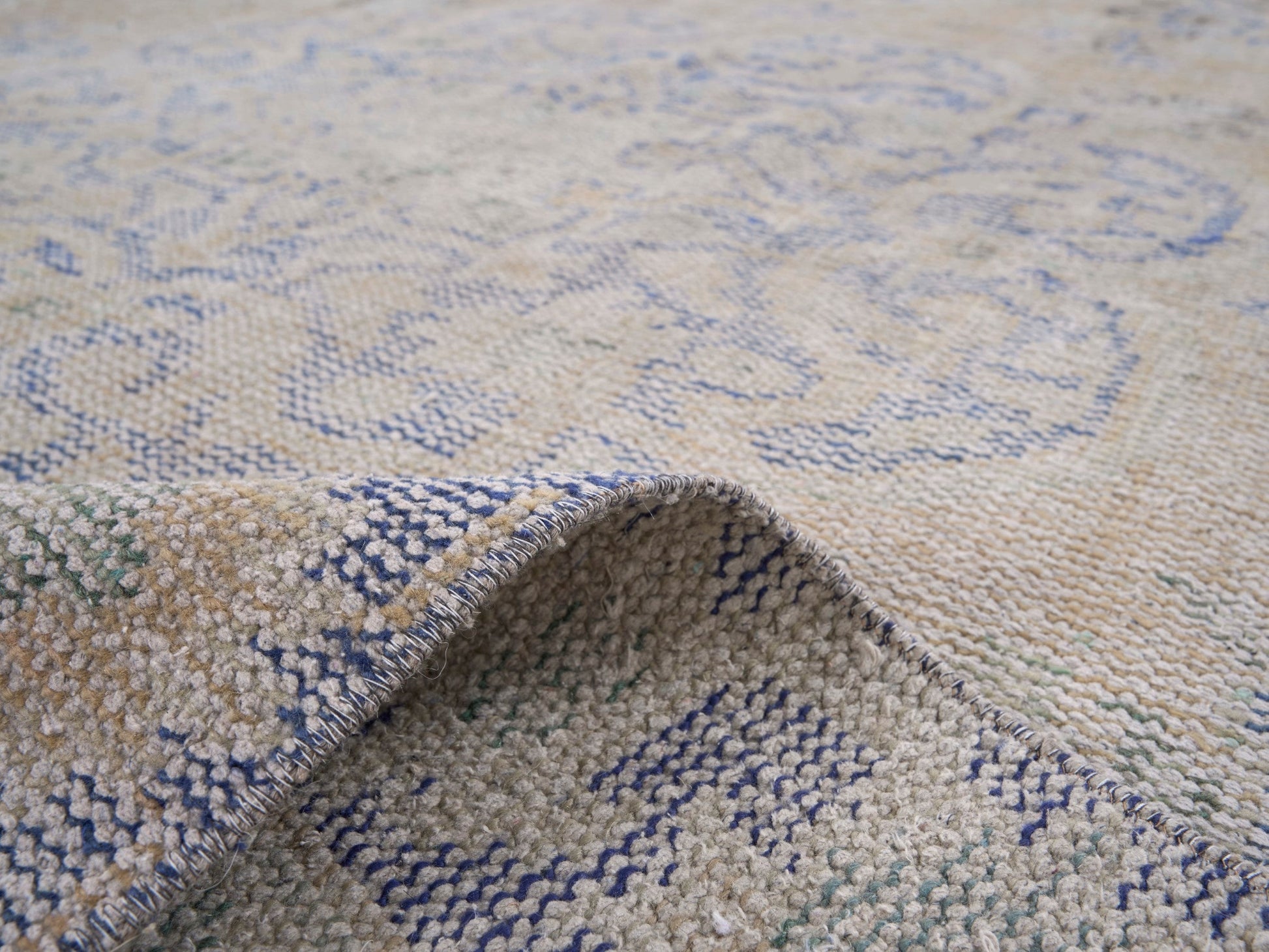 This rug is a hand-knotted rug, and edges are hand sewn.