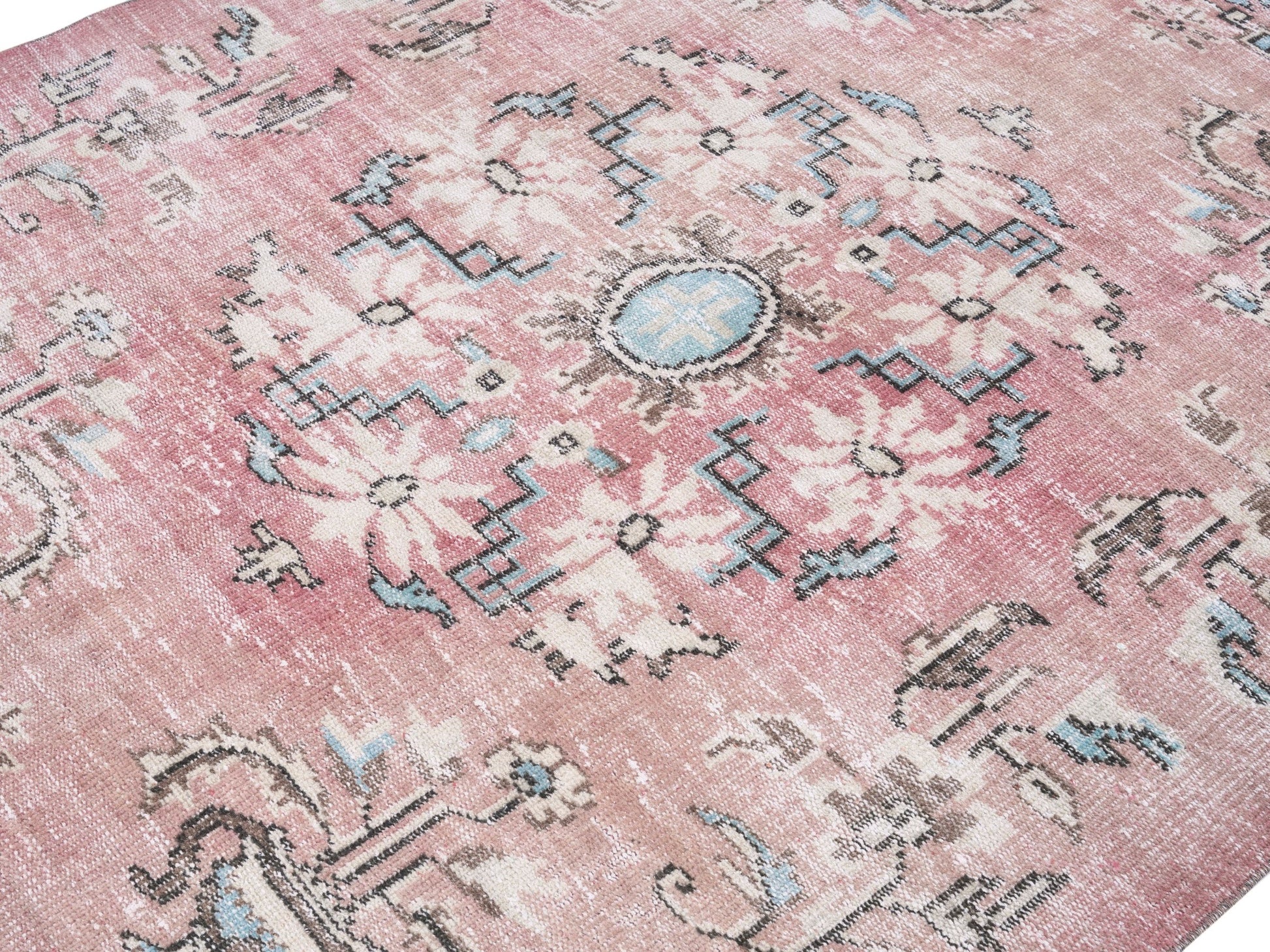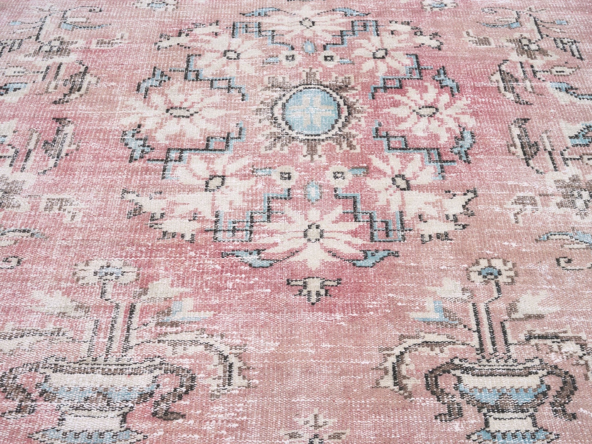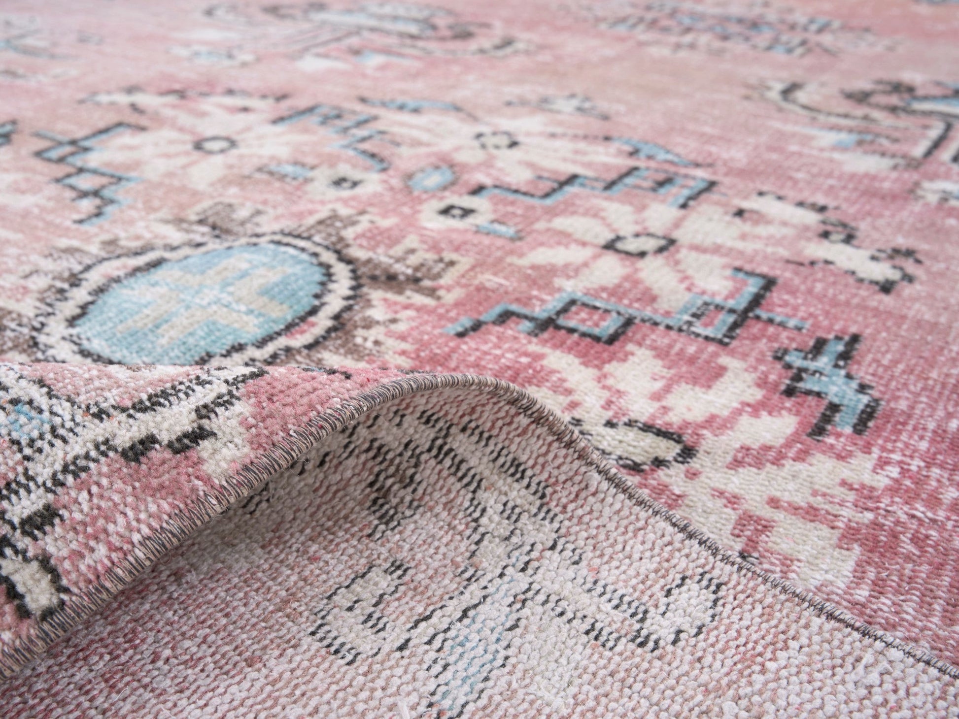 All the rugs we sell are professionally washed and cleaned; age-related wear and natural inconsistencies are inherent in these unique, handcrafted vintage rugs.