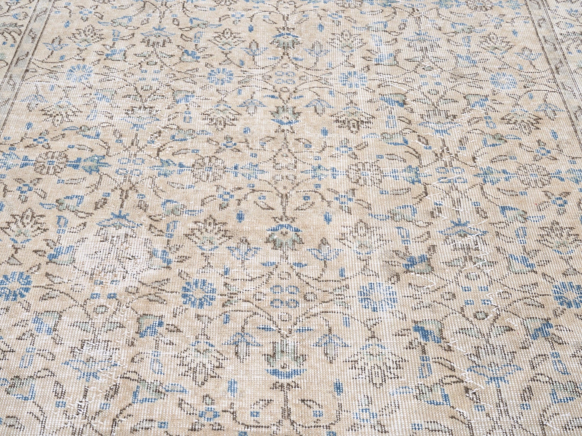 All the rugs we sell are professionally washed and cleaned; age-related wear and natural inconsistencies are inherent in these unique, handcrafted vintage rugs.