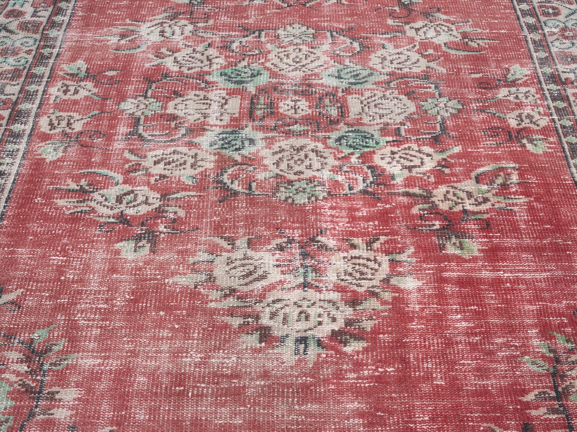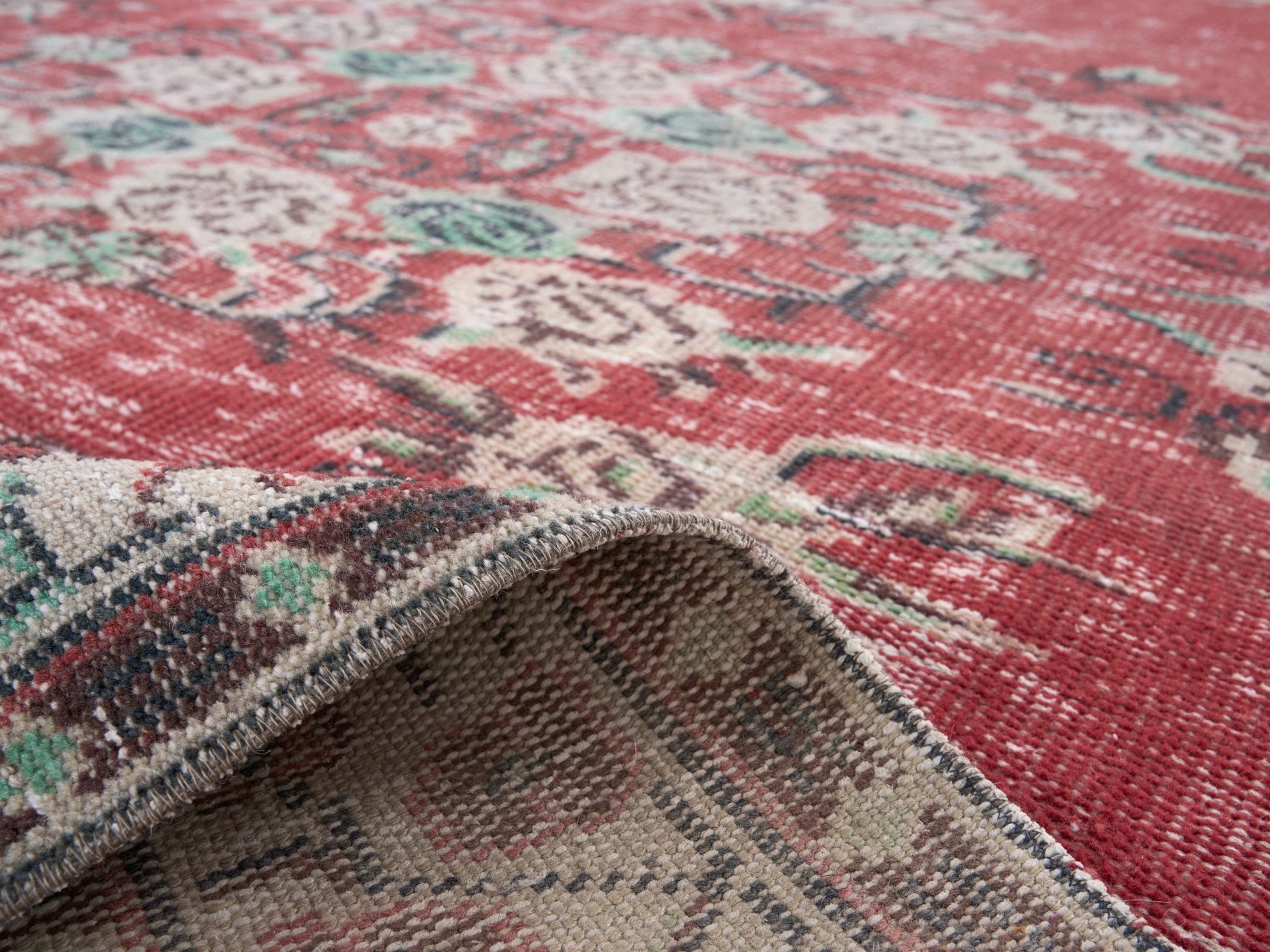 All the rugs we sell are professionally washed and cleaned; age-related wear and natural inconsistencies are inherent in these unique, handcrafted vintage rugs.