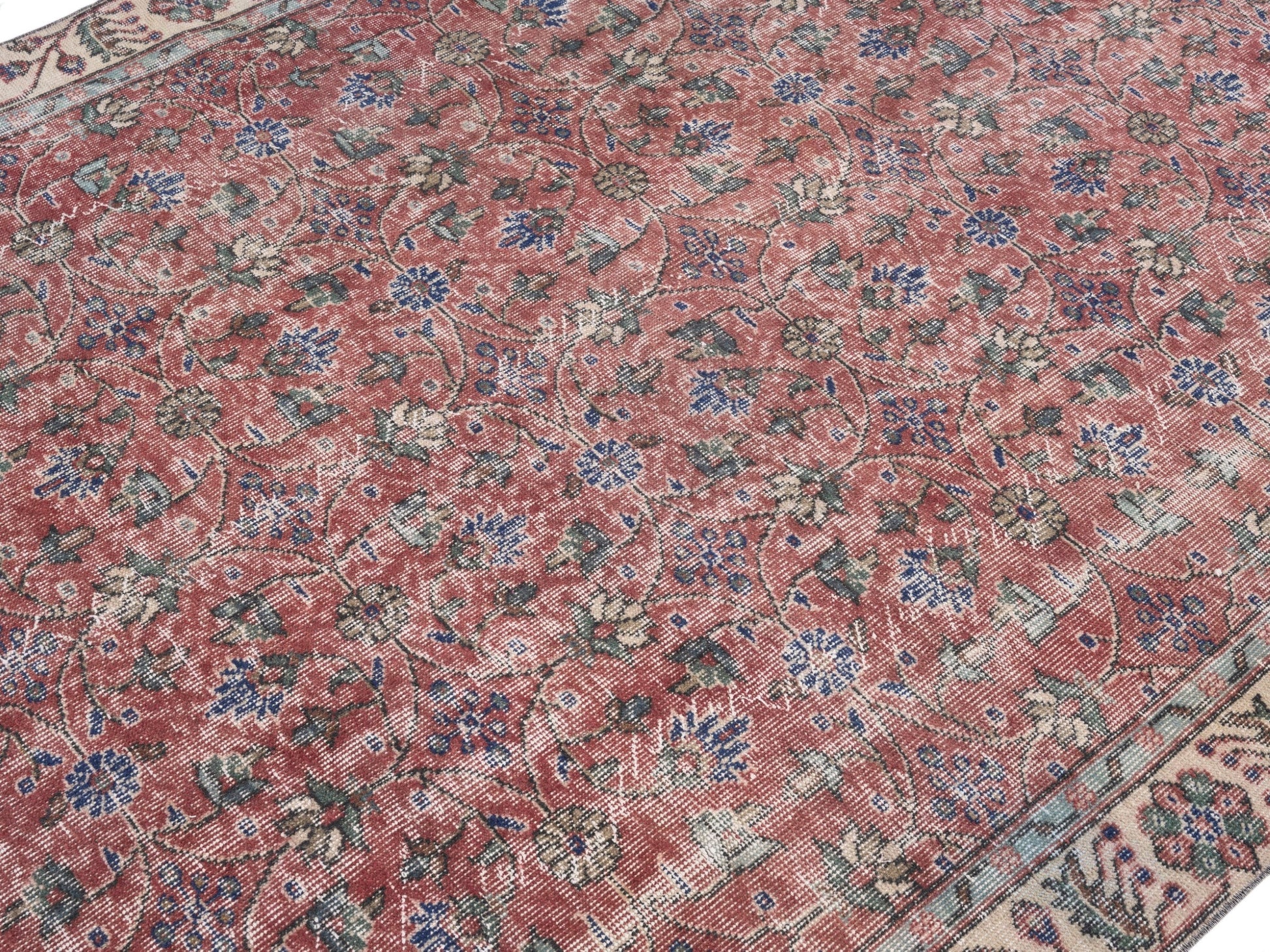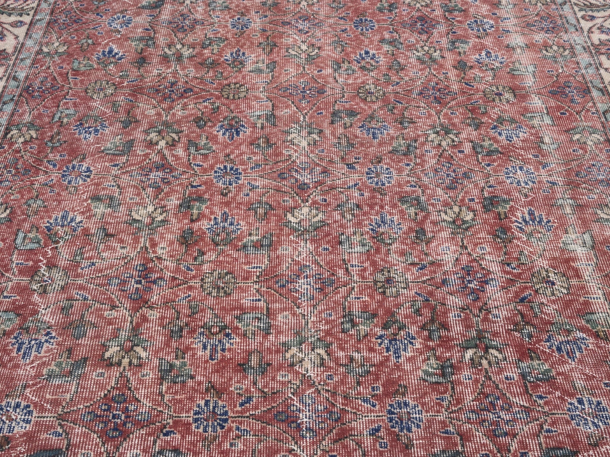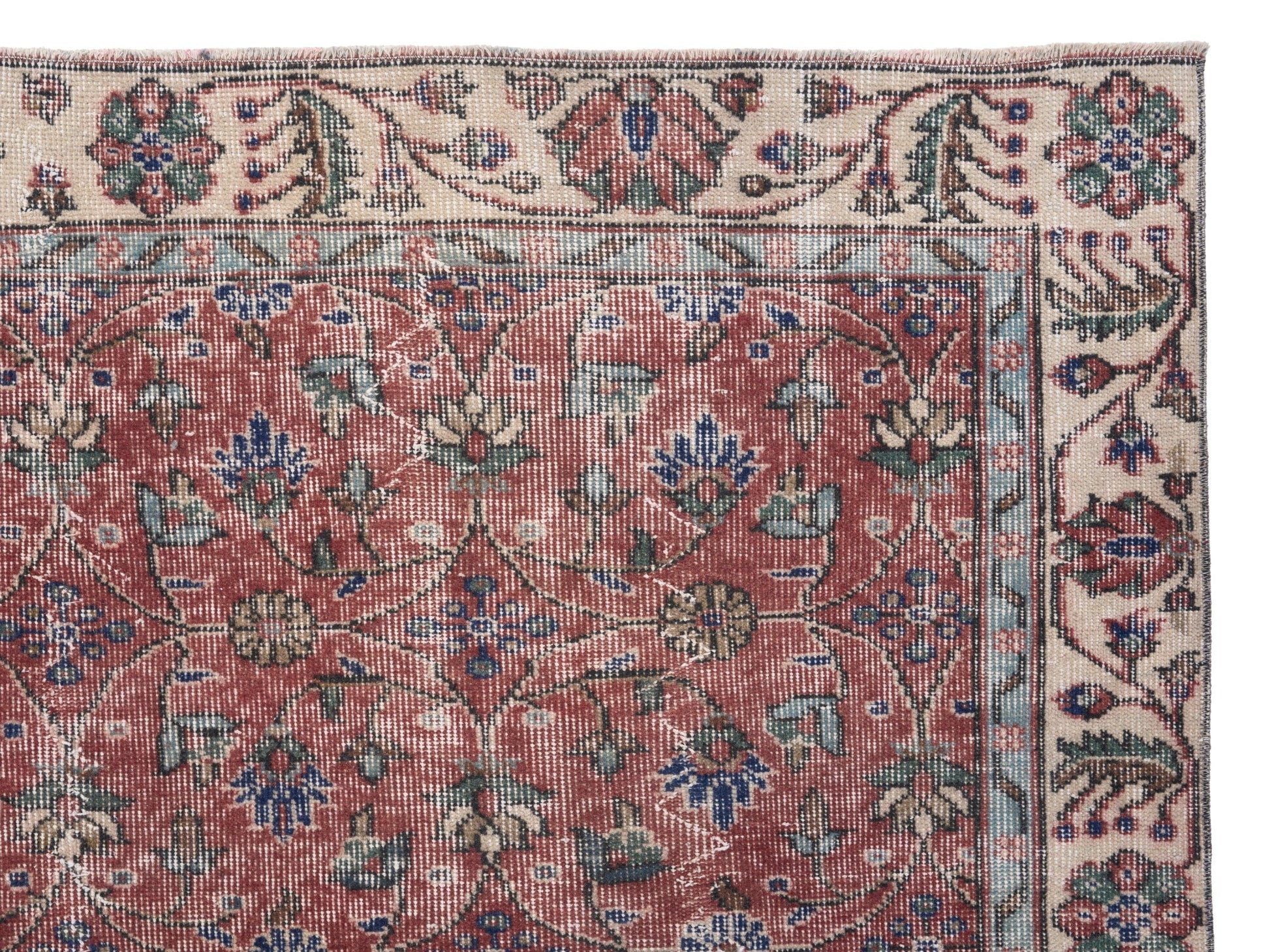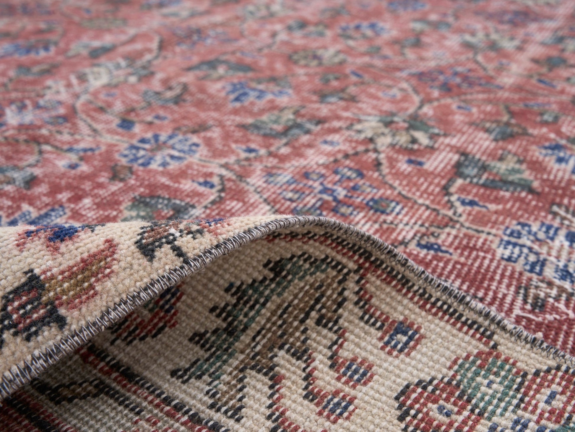 All the rugs we sell are professionally washed and cleaned; age-related wear and natural inconsistencies are inherent in these unique, handcrafted vintage rugs.