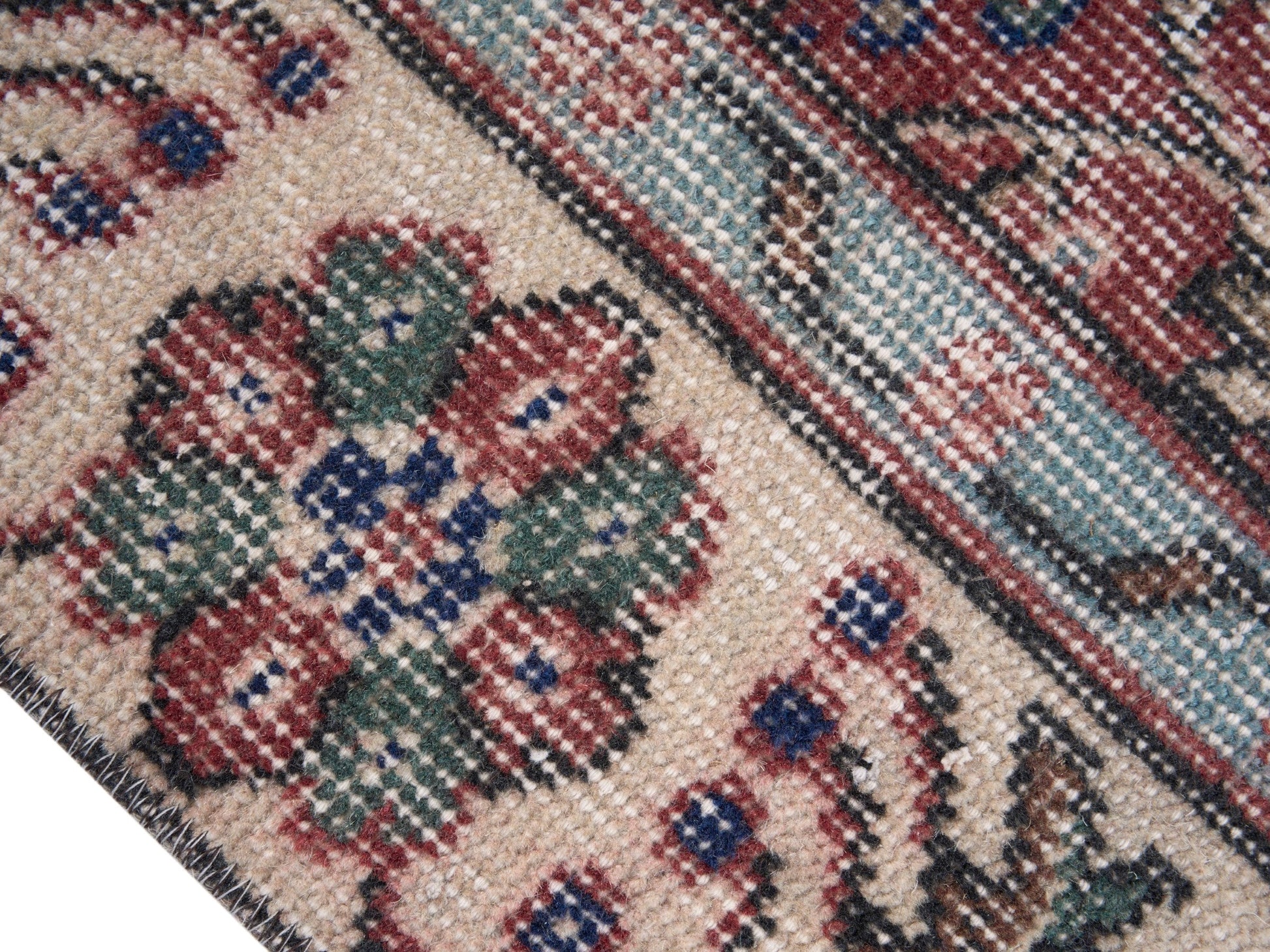 This rug is a hand-knotted rug, and edges are hand sewn.