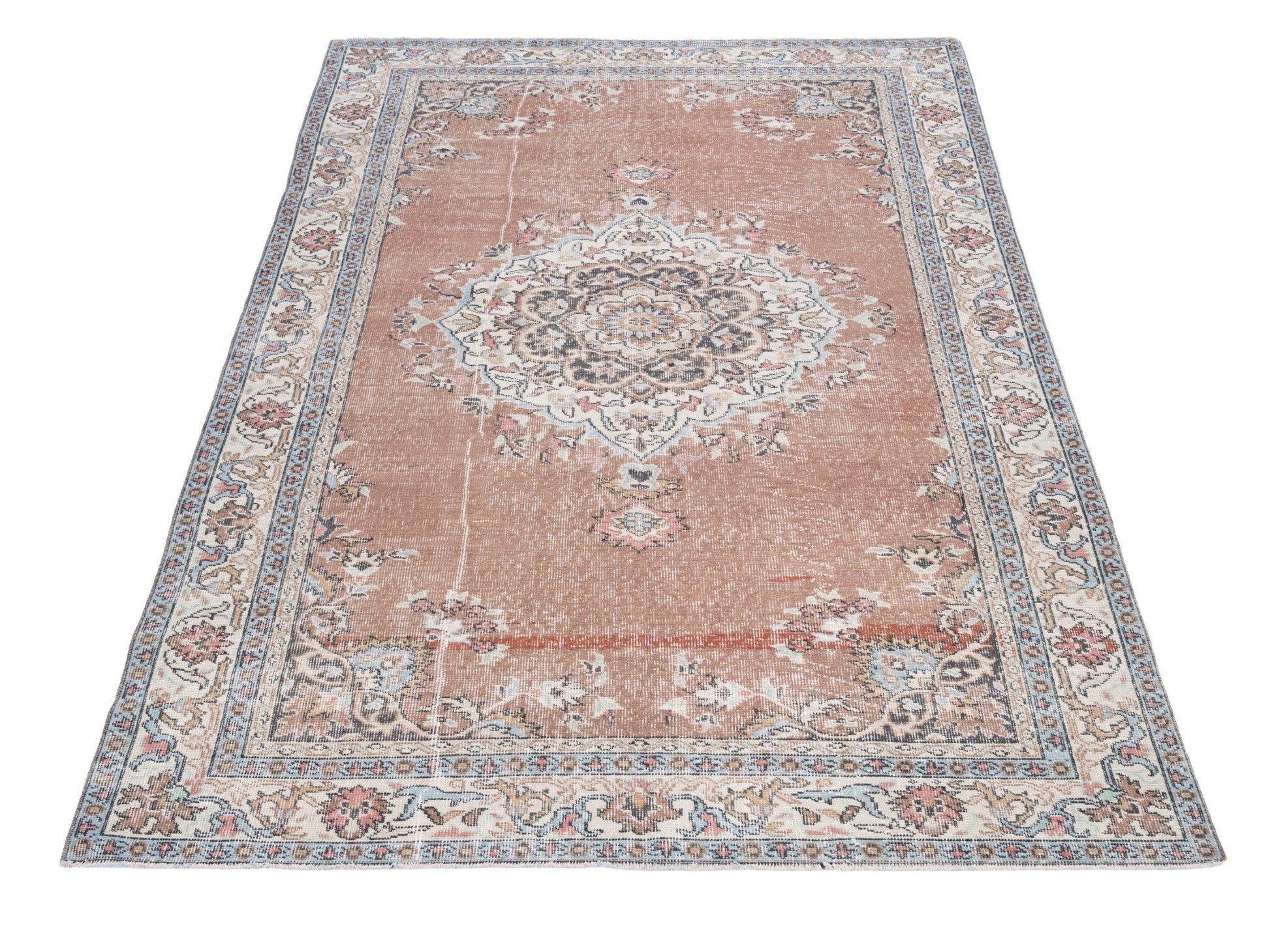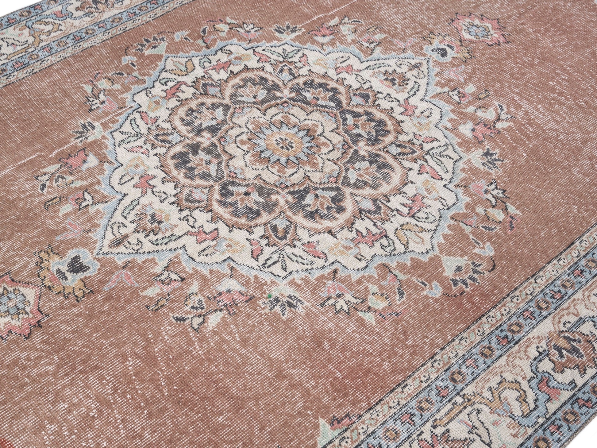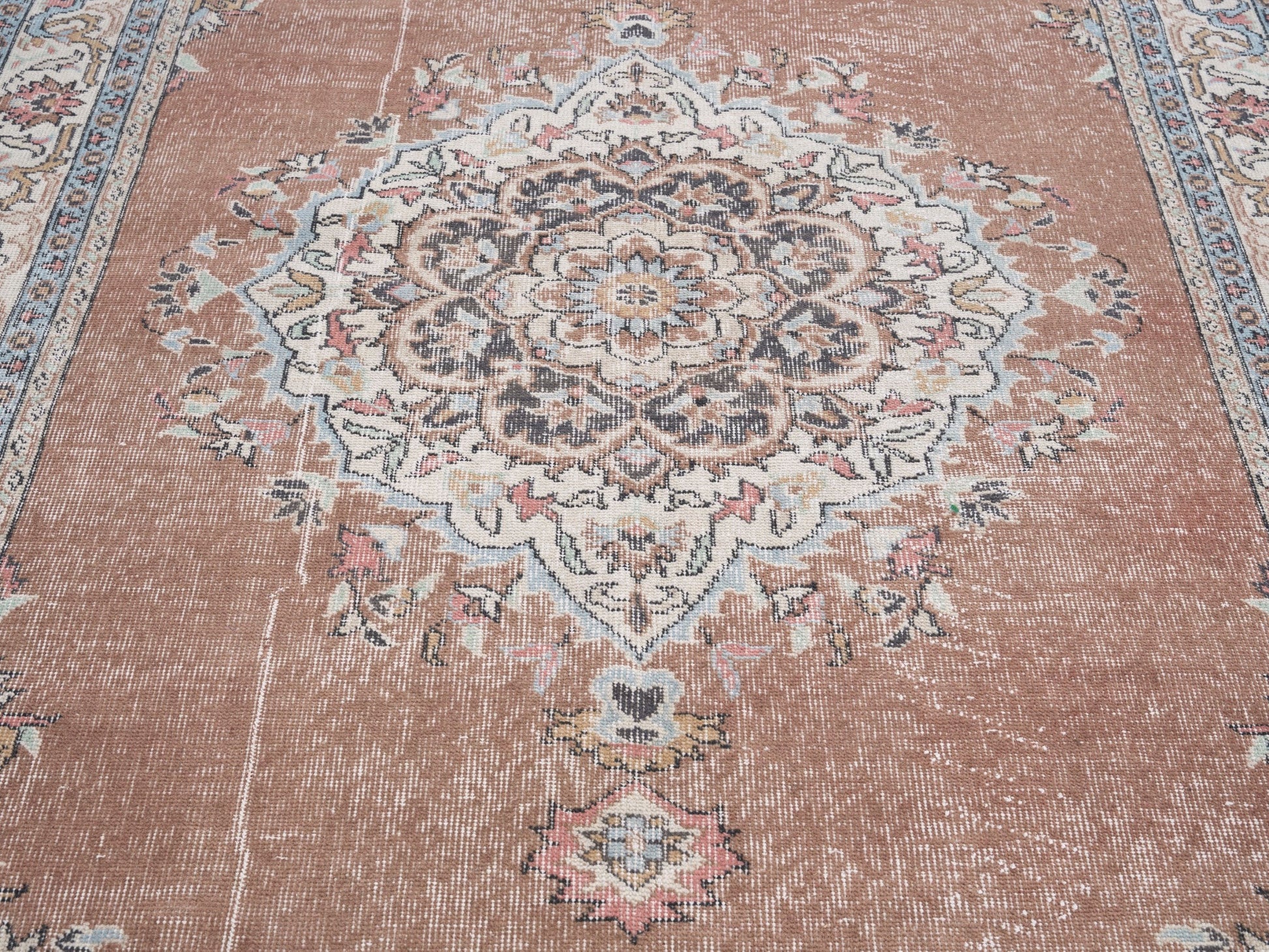 All the rugs we sell are professionally washed and cleaned; age-related wear and natural inconsistencies are inherent in these unique, handcrafted vintage rugs.