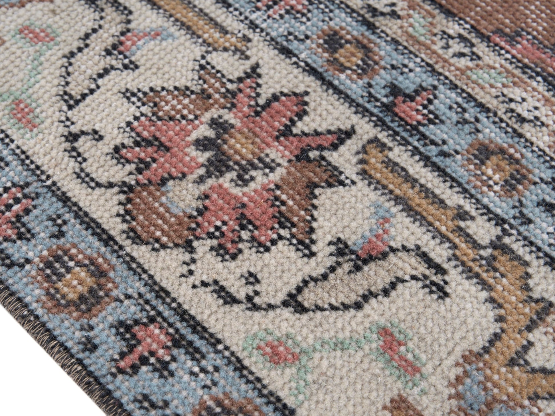 This rug is a hand-knotted rug, and edges are hand sewn.