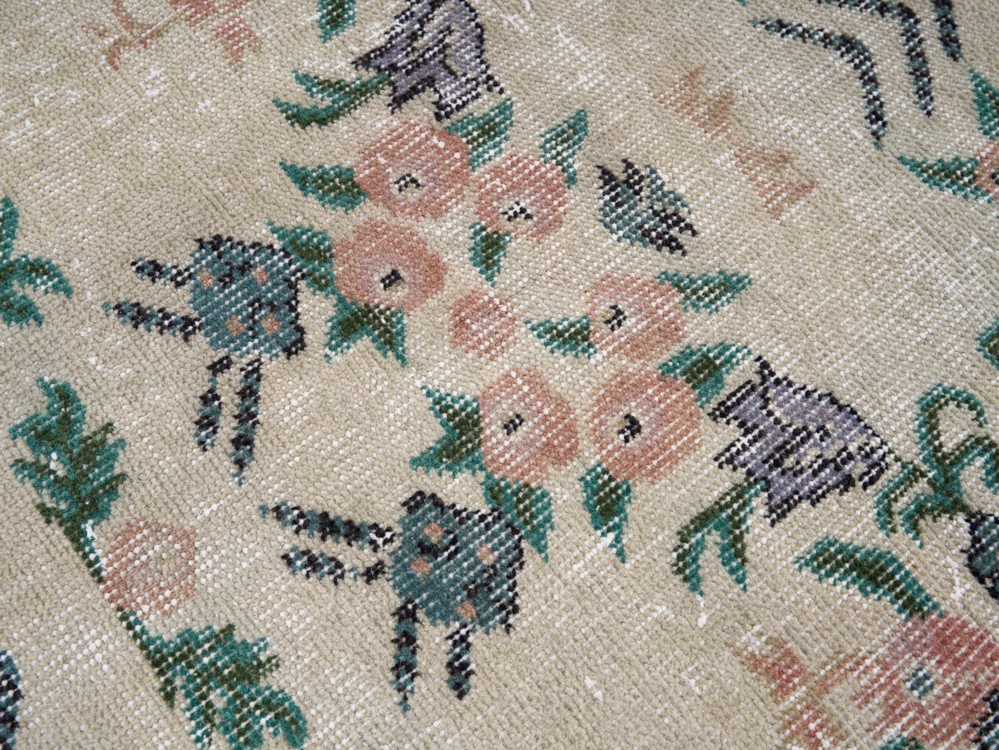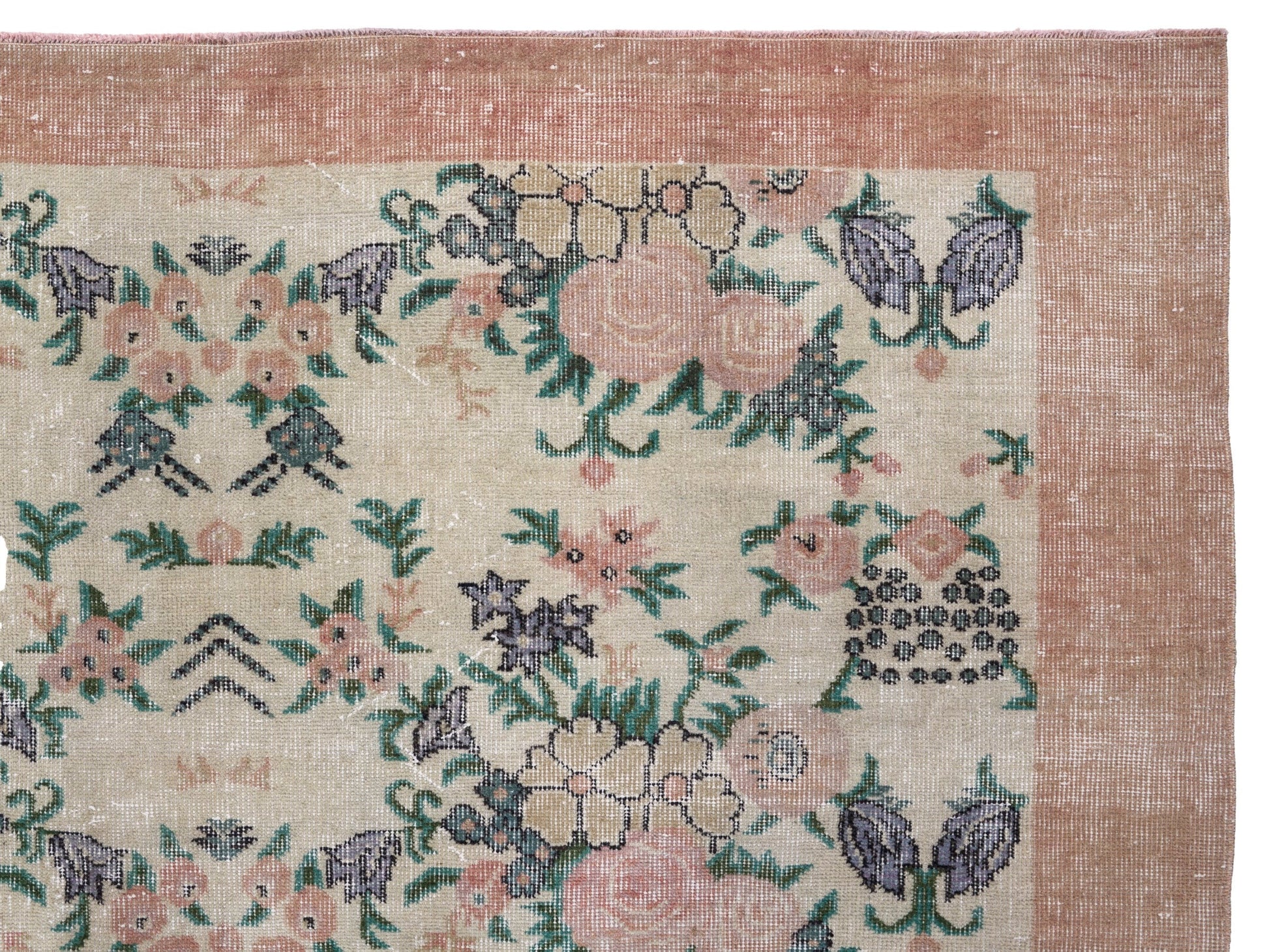 All the rugs we sell are professionally washed and cleaned; age-related wear and natural inconsistencies are inherent in these unique, handcrafted vintage rugs.