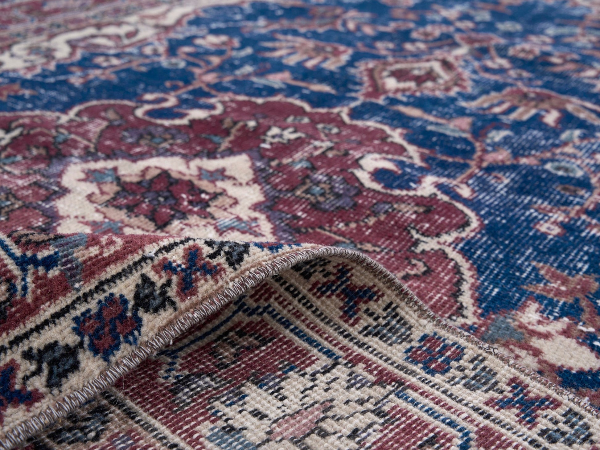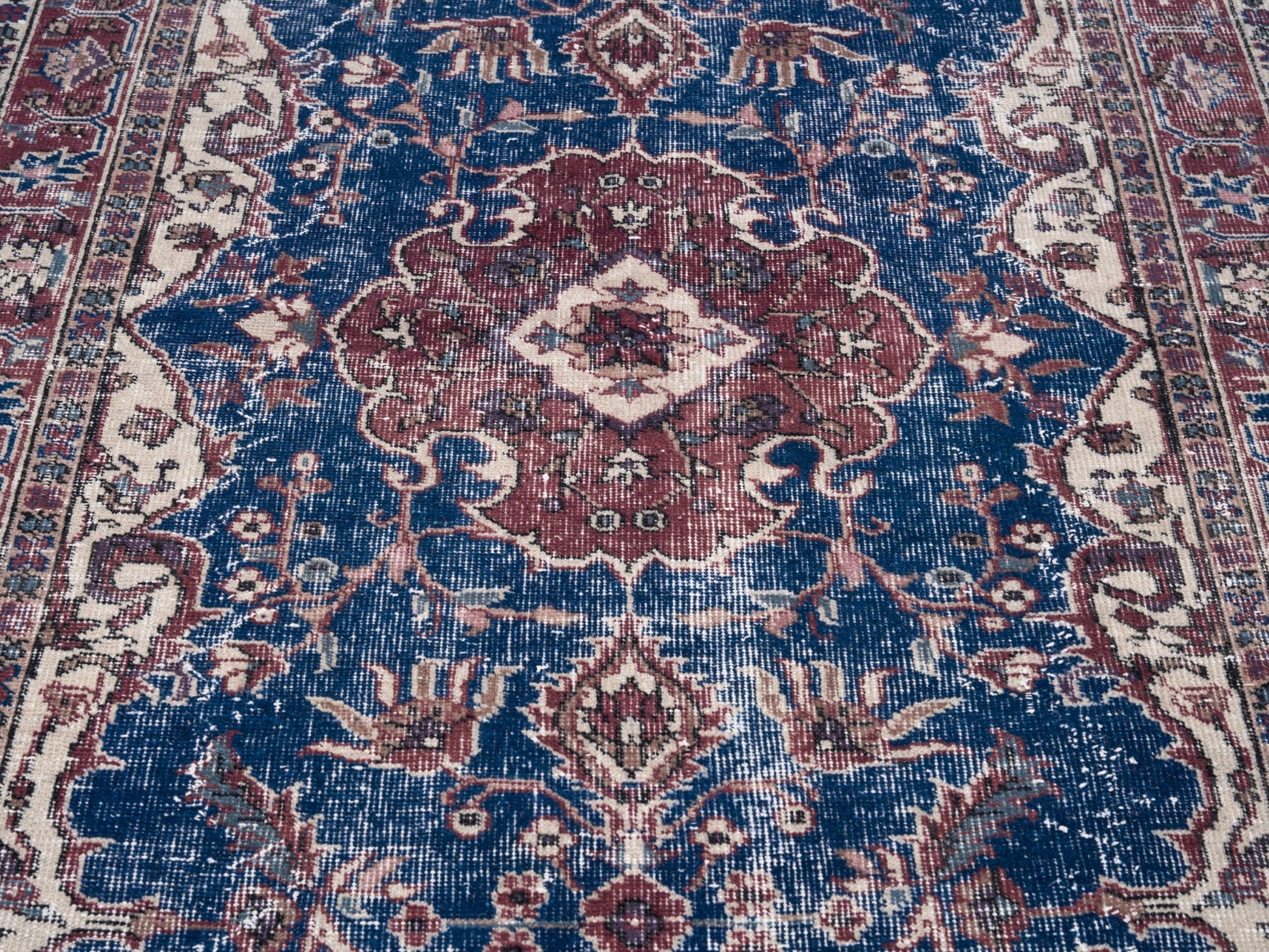 All the rugs we sell are professionally washed and cleaned; age-related wear and natural inconsistencies are inherent in these unique, handcrafted vintage rugs.