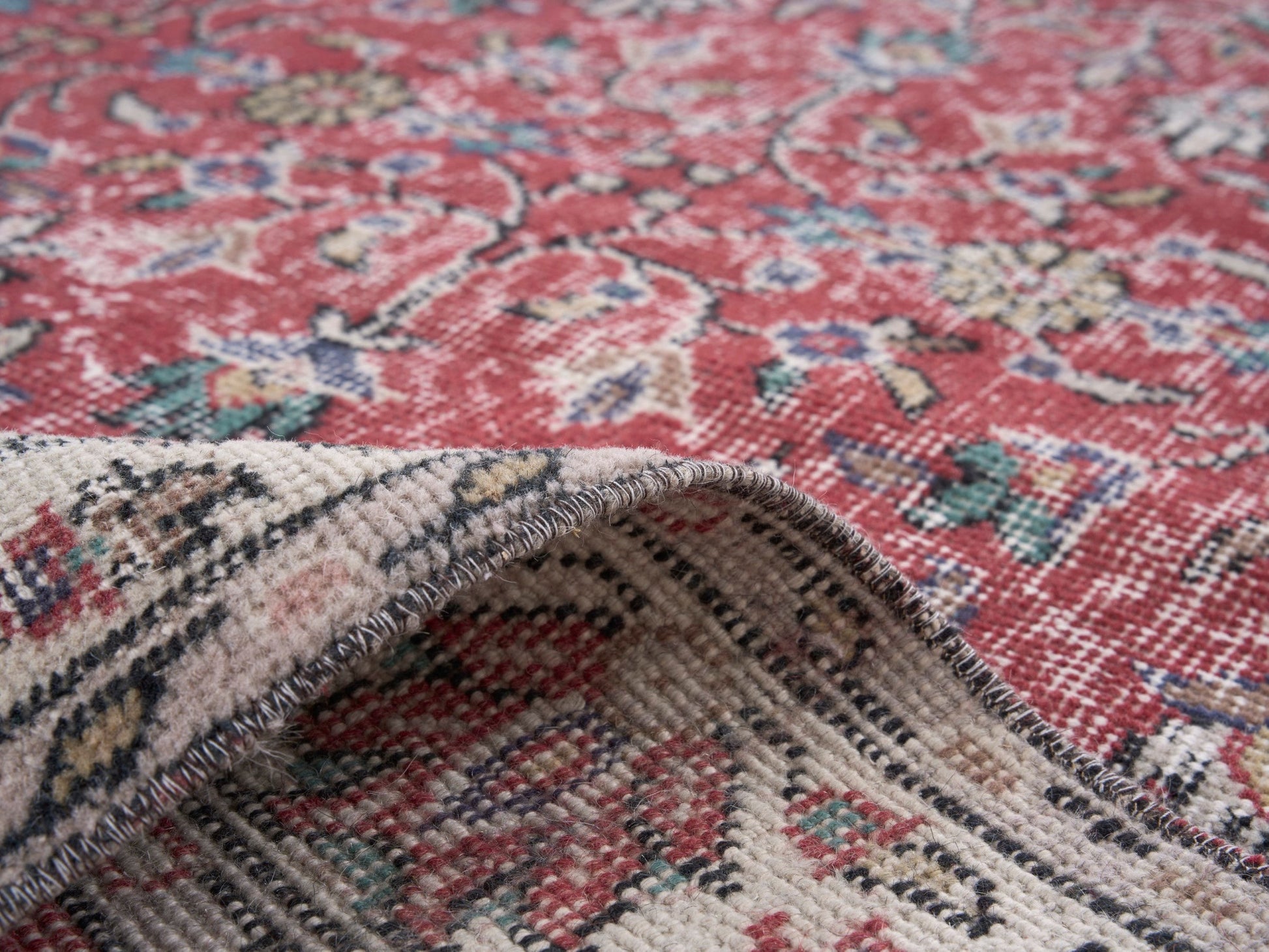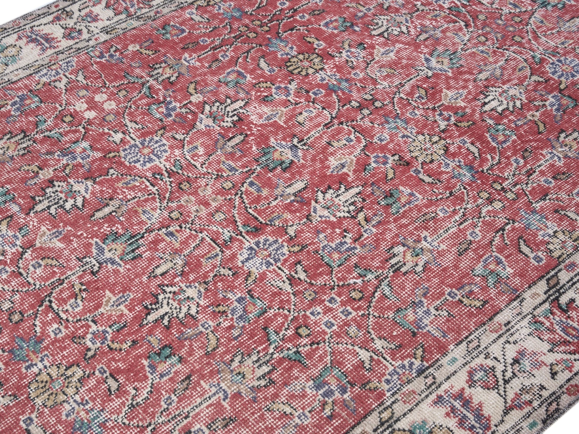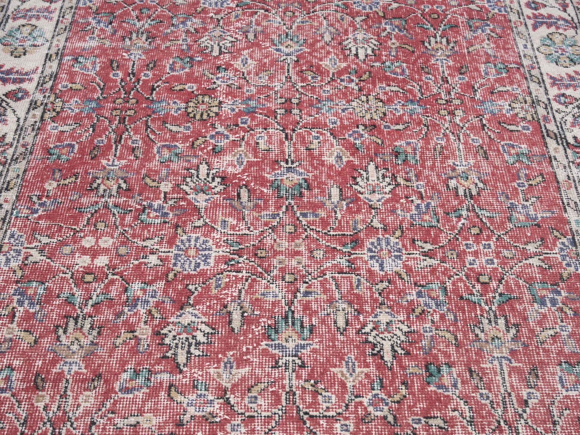 All the rugs we sell are professionally washed and cleaned; age-related wear and natural inconsistencies are inherent in these unique, handcrafted vintage rugs.