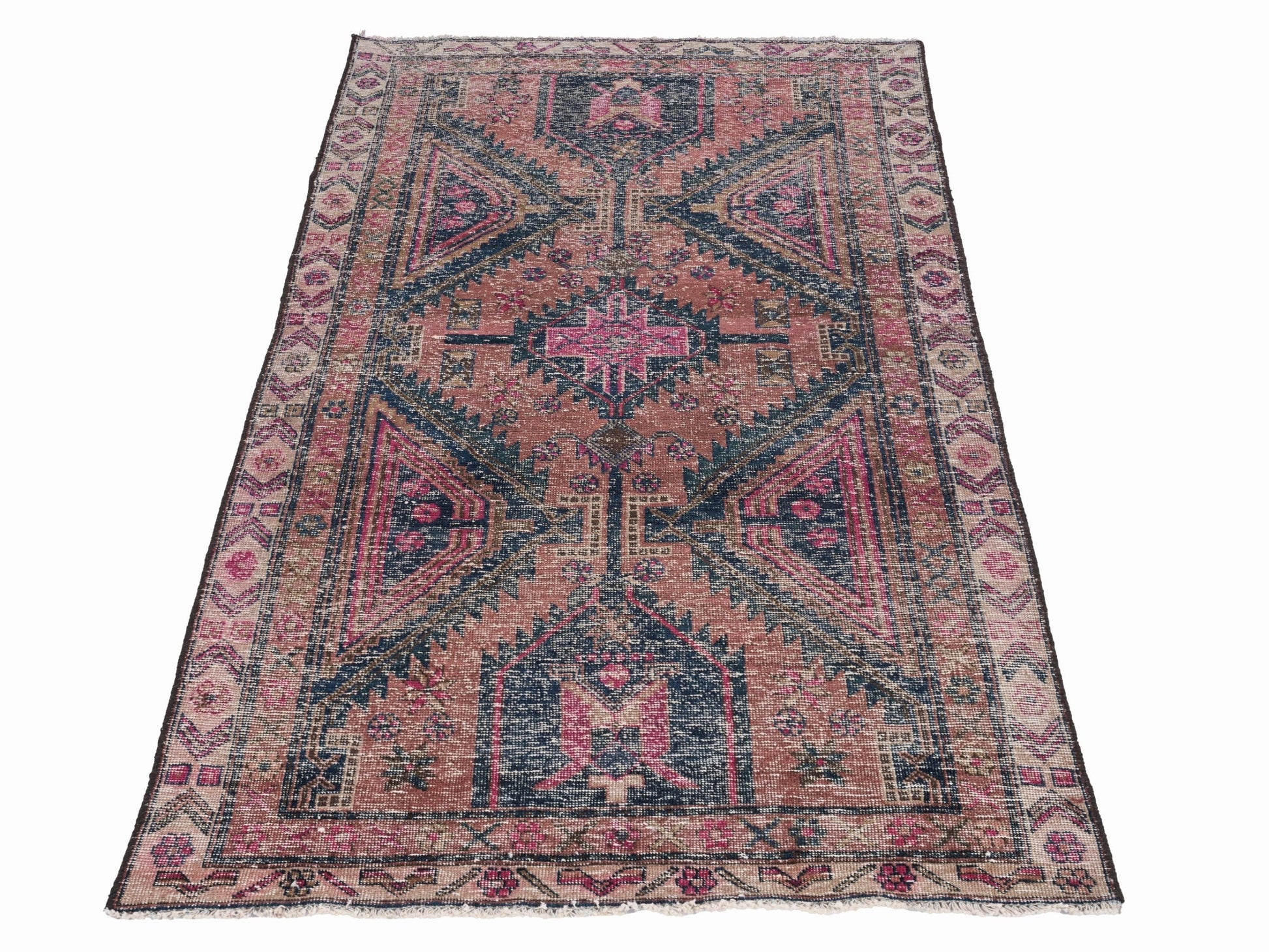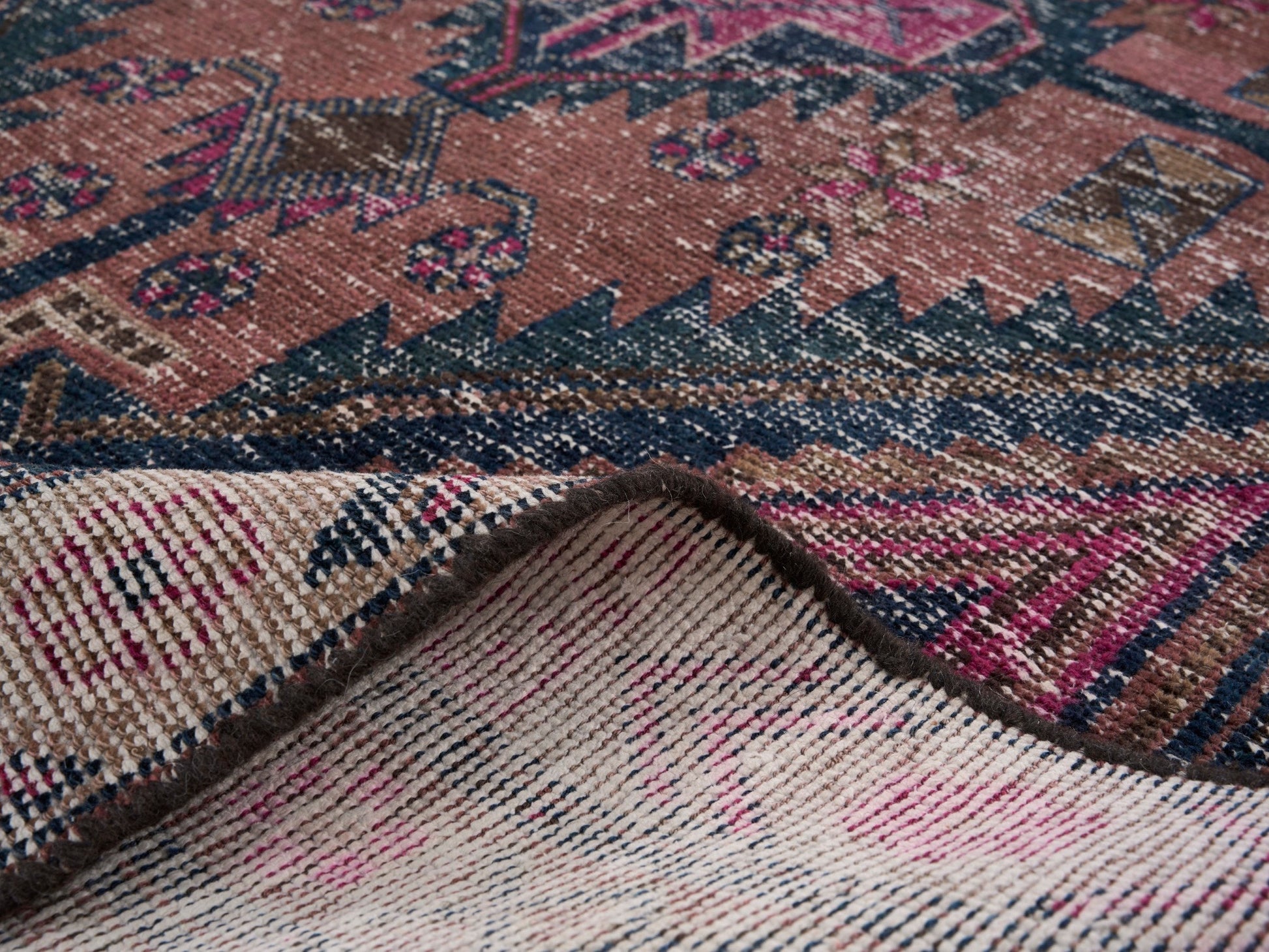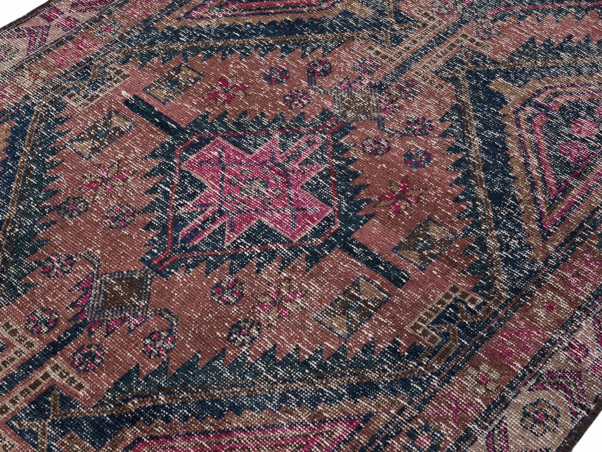 All the rugs we sell are professionally washed and cleaned; age-related wear and natural inconsistencies are inherent in these unique, handcrafted vintage rugs.