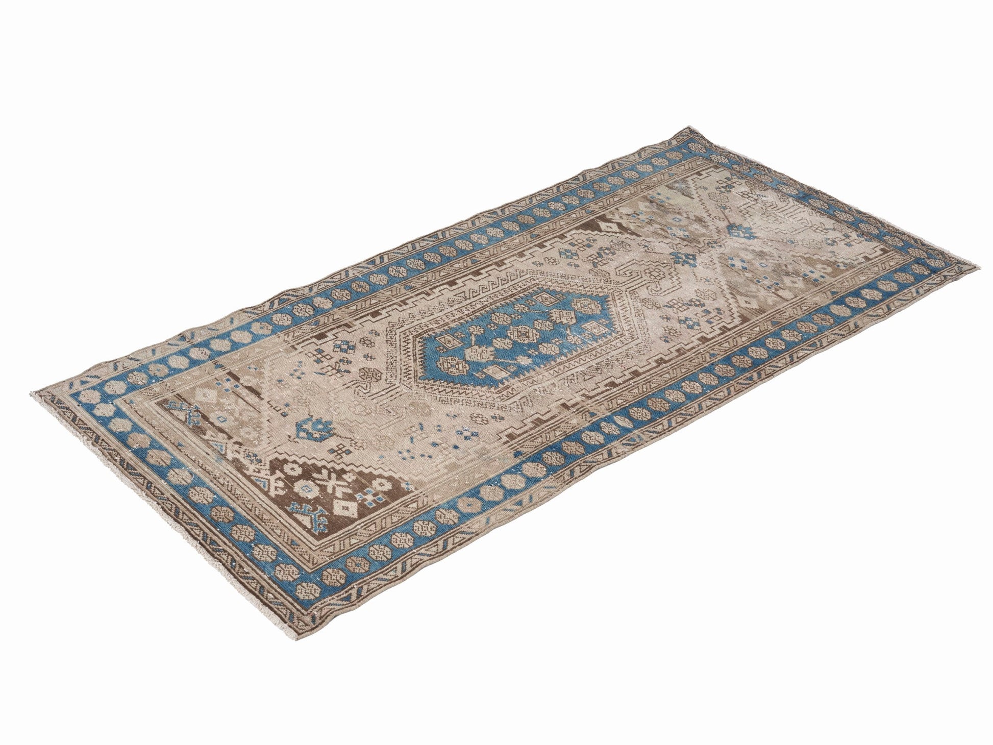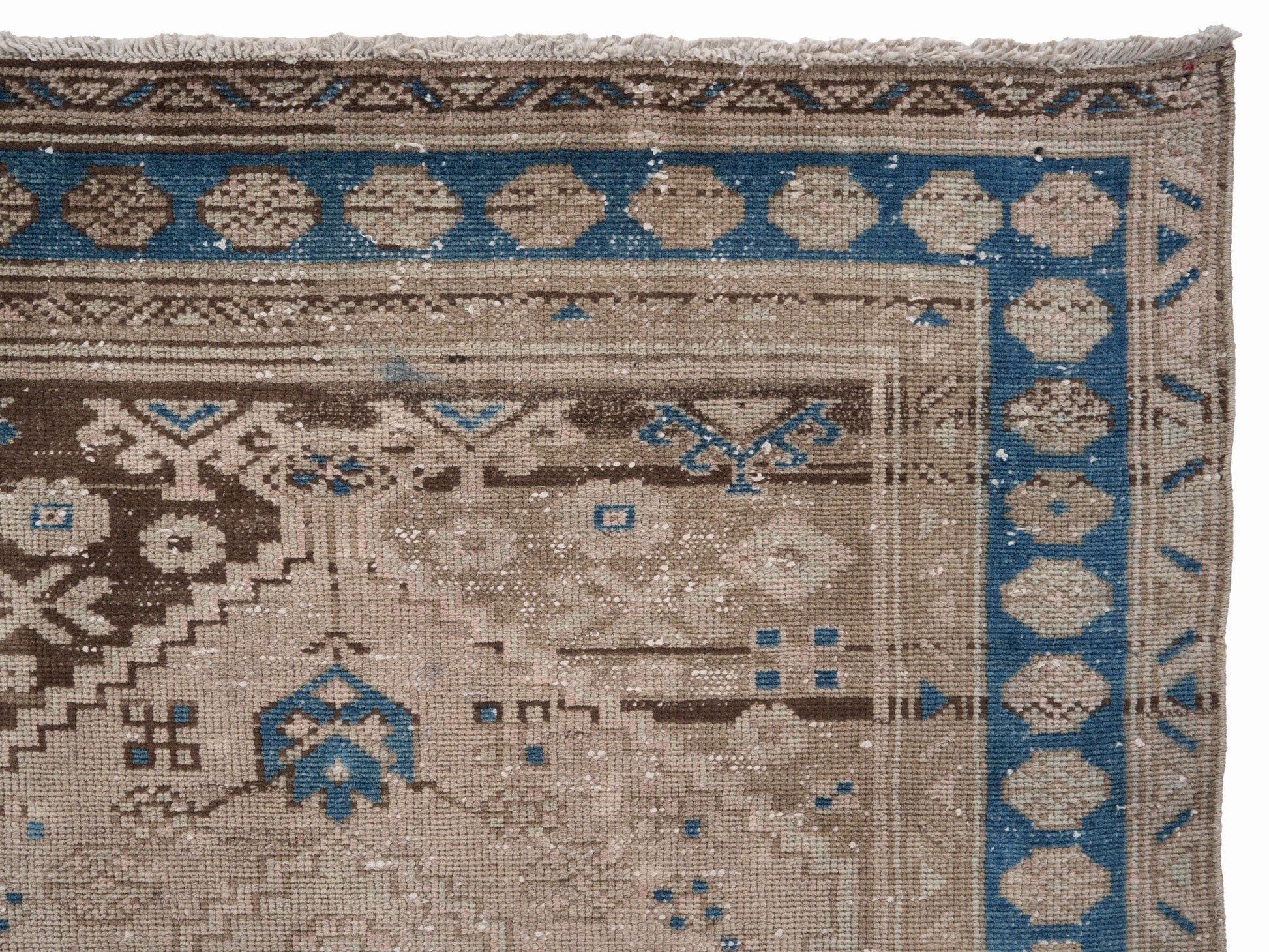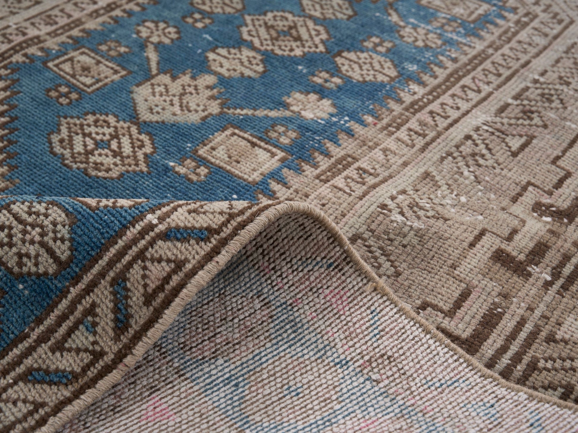 All the rugs we sell are professionally washed and cleaned; age-related wear and natural inconsistencies are inherent in these unique, handcrafted vintage rugs.