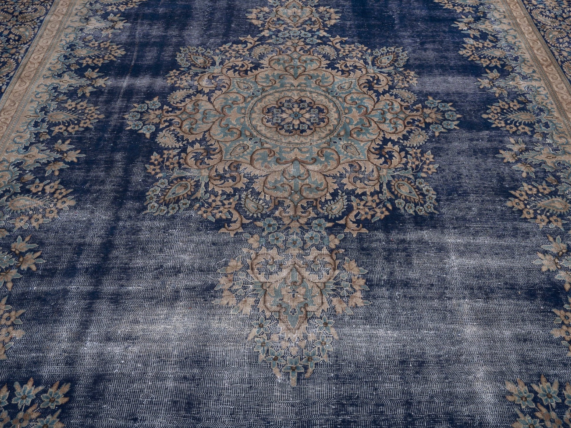 All the rugs we sell are professionally washed and cleaned; age-related wear and natural inconsistencies are inherent in these unique, handcrafted vintage rugs.