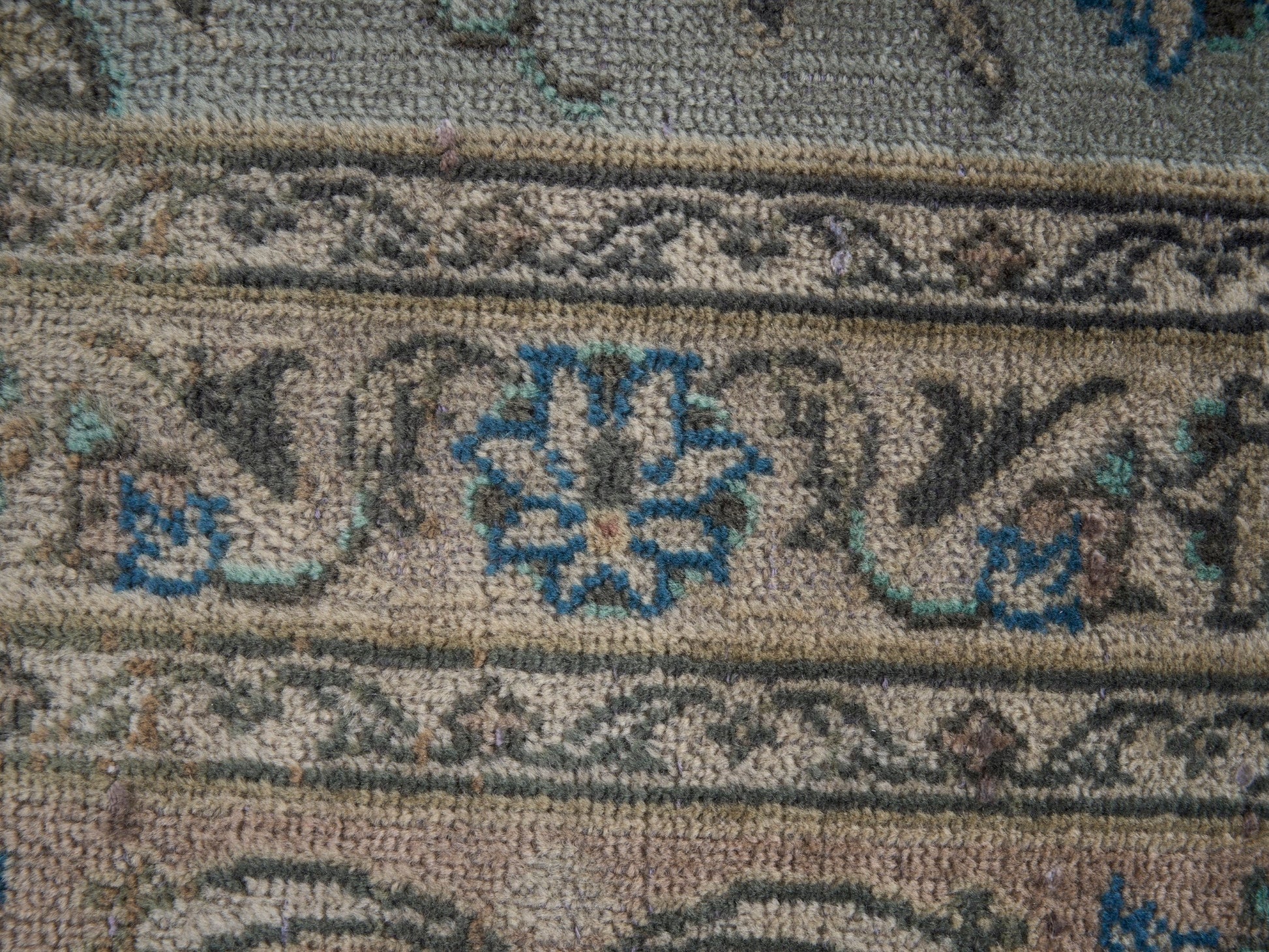 This rug is a hand-knotted rug, and edges are hand sewn.